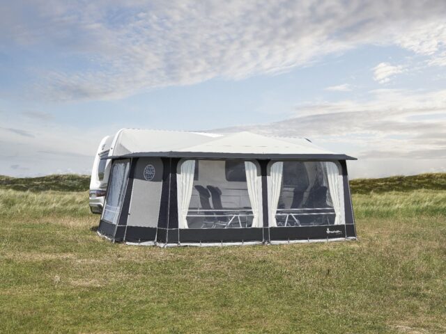 99% of UK caravans sit at a height of 235-250cm, and all the porch awnings on the market will fit this height. Sometimes, you’ll see other sizes called S and M with a range of cm – these are also to accommodate motorhomes, like the new awnings from Dometic and Telta which have a zip in the side panel to allow the roof height to increase.