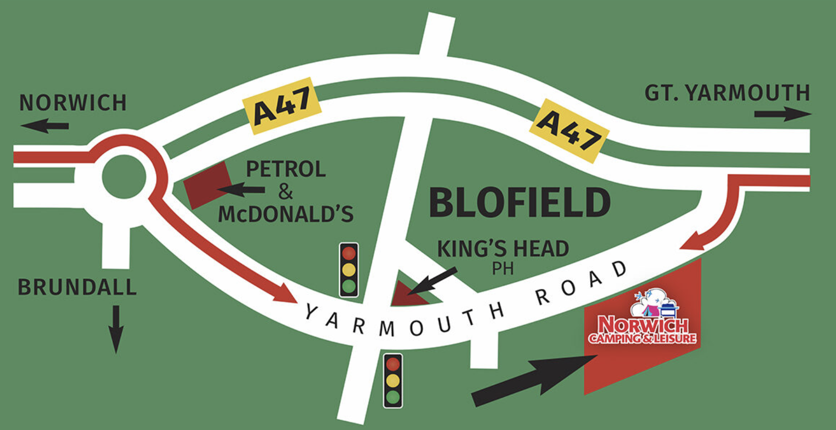 We’re easy to find, situated just outside Norwich off the A47 in Blofield, near Brundall. We’ve got plenty of parking spaces on-site and it’s free to park while you look around The Leisure Village. We also have a click-and-collect drive-through lane for the convenient collection of larger and heavier items purchased at Norwich Camping & Leisure.