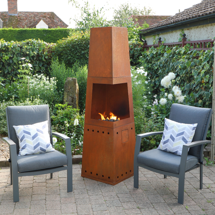 These traditionally let you burn wood in them as an enclosed alternative to an open fire or firepit. They radiate heat out and provide a warm glow for a convivial atmosphere, plus you can also get types of chimenea with cooking grids to grill steaks, sausages etc at the same time. Traditional fired-clay chimeneas were first used 400 years ago by Spanish settlers in Mexico. Hence the hand-made, ethnic style of many models, though minimalistic, industrial styles are also available.