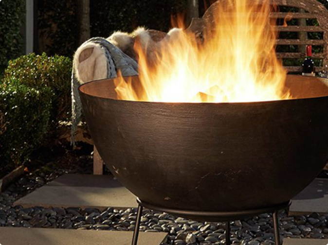 These give you an outdoor experience that’s closer to the traditional 360-degree open fire. They hold the burning logs to stop the scattering of hot embers, so maintain a good fire for longer. Firepits come in all shapes and sizes, some very basic, others pretty ornate. They can be made from heavy-gauge steel, black-painted steel, cast iron with ‘industrial-look’ rusted finish. Some use recycled steel to achieve individual objects of real hand-worked interest. This complete variation in style and scale lets you find something suitable for all situations. There’s a size and type for a small areas, or for big spaces with larger gatherings of people. Burning kiln-dried and seasoned logs, firepits and firebowls have brought the humble bonfire back into fashion.
