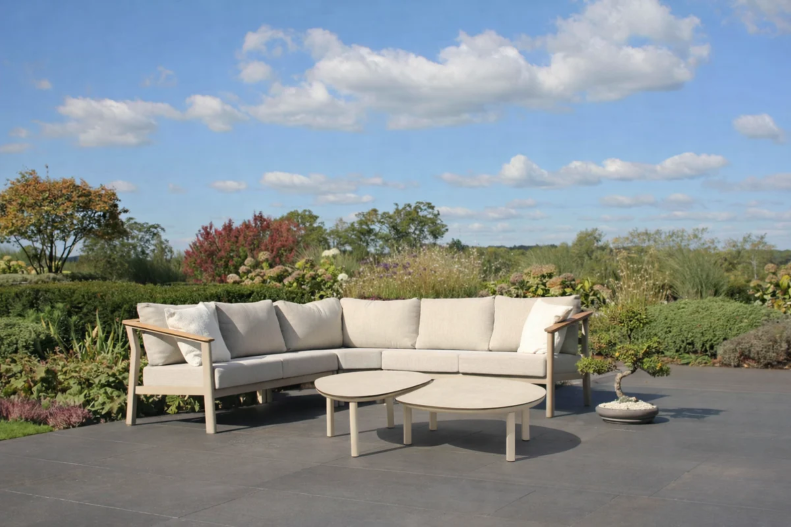 The outdoor modular lounge with coffee tables makes entertaining and relaxing effortless. Furthermore, its thoughtful materials and craftsmanship ensure you enjoy comfort today and lasting performance tomorrow. In addition, the neutral latte tones integrate seamlessly into a range of garden styles — from contemporary patios to classic terraces.