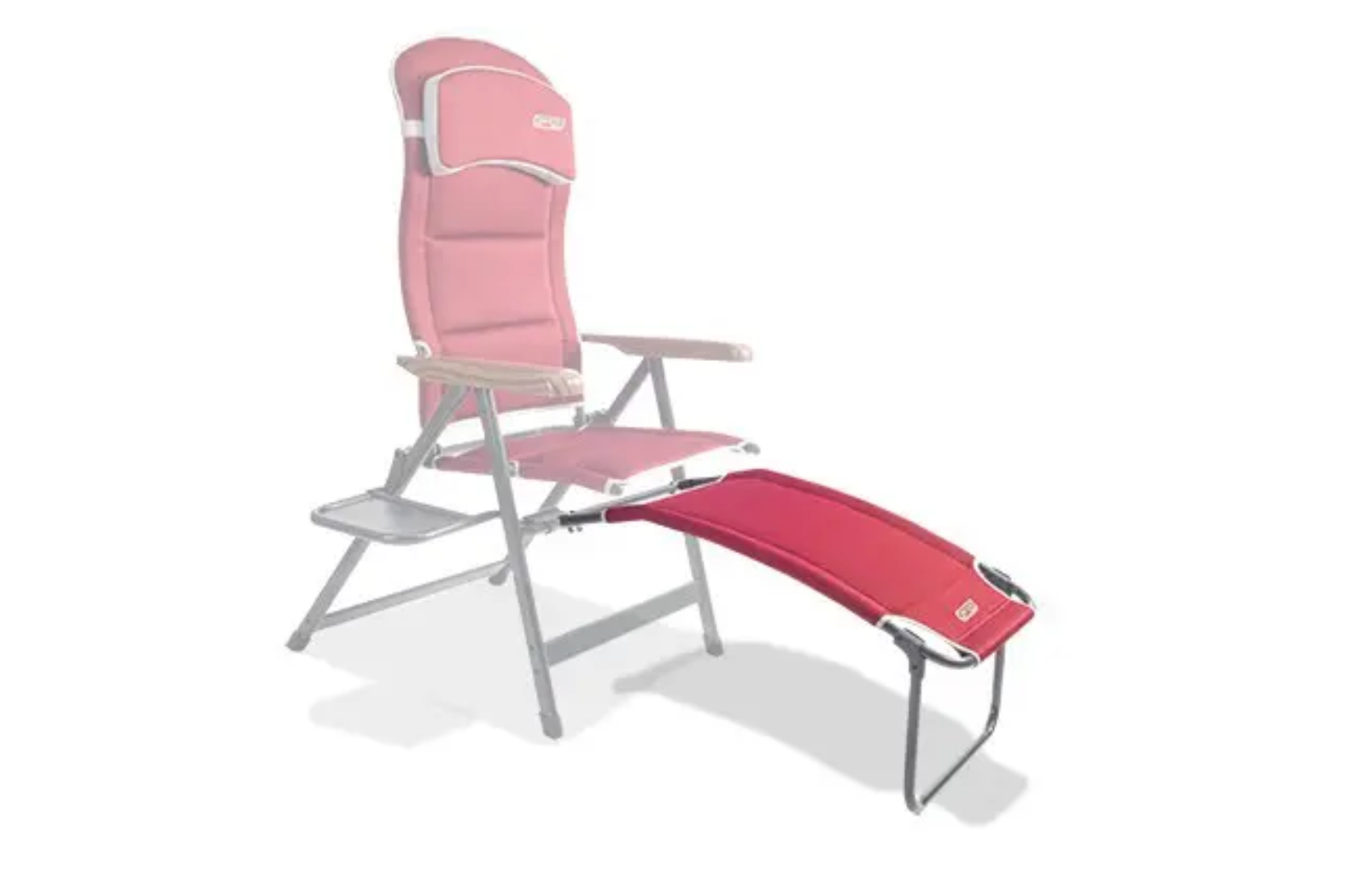The Quest Bordeaux Pro Rest Leg Extension – Red is designed to transform your outdoor chair into a full-length lounger for complete relaxation. Whether you’re camping, caravanning, or relaxing in the garden, this leg rest allows you to stretch out in comfort and enjoy extra support. It has been crafted to perfectly match the Bordeaux Pro Easy, Comfort, and Recline chairs, but thanks to its smart, universal design, it can also be used with many other similar camping chairs. This makes it a flexible and practical addition to any outdoor furniture setup.