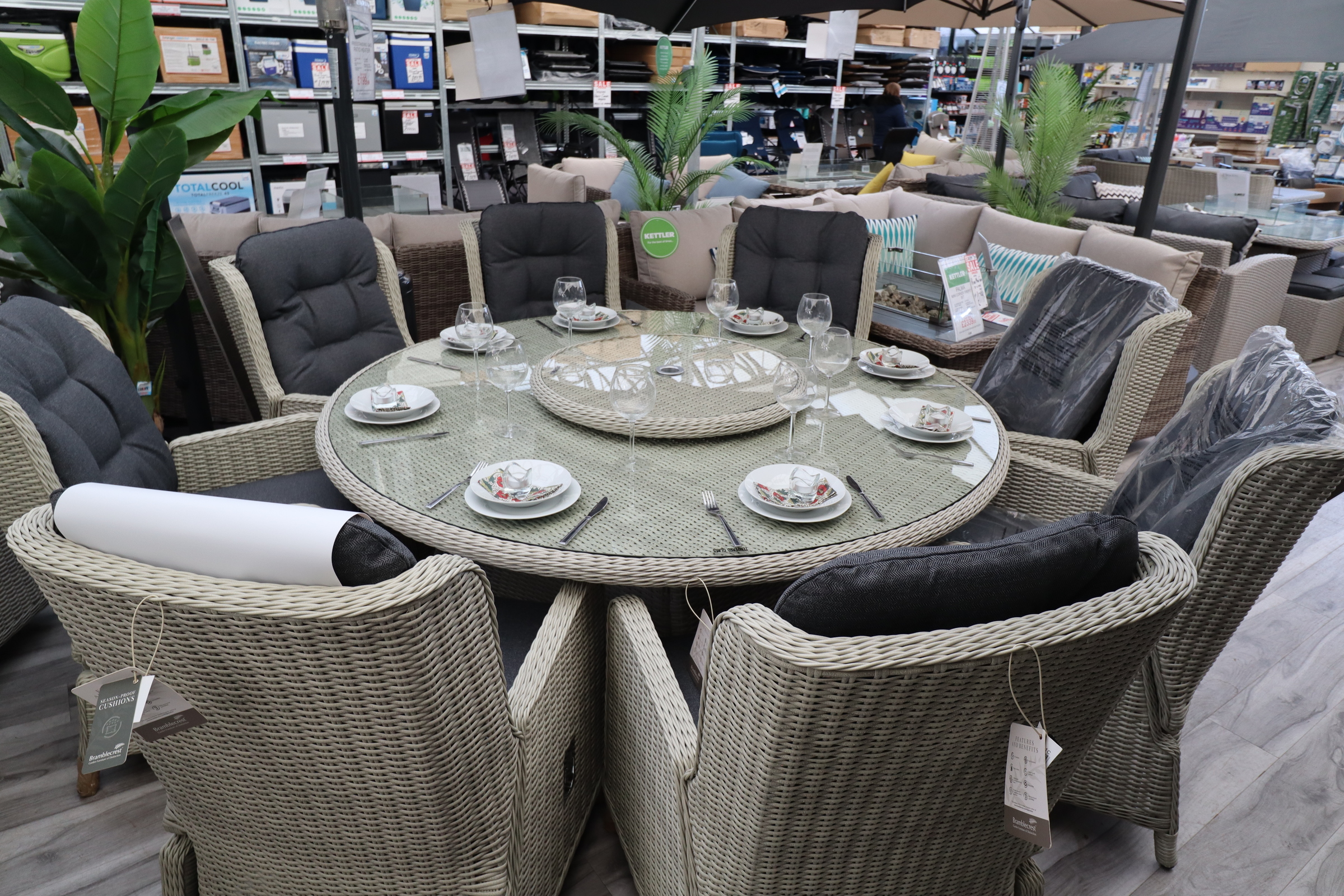 The Bramblecrest Chedworth range is a premium collection with timeless style. For example, the table-tops are all made of ceramic or tempered glass. This makes them sturdy, simple to clean and suitable for year-round use. Then, for added comfort, the seat bases and backs of the chairs feature deep-filled cushions.