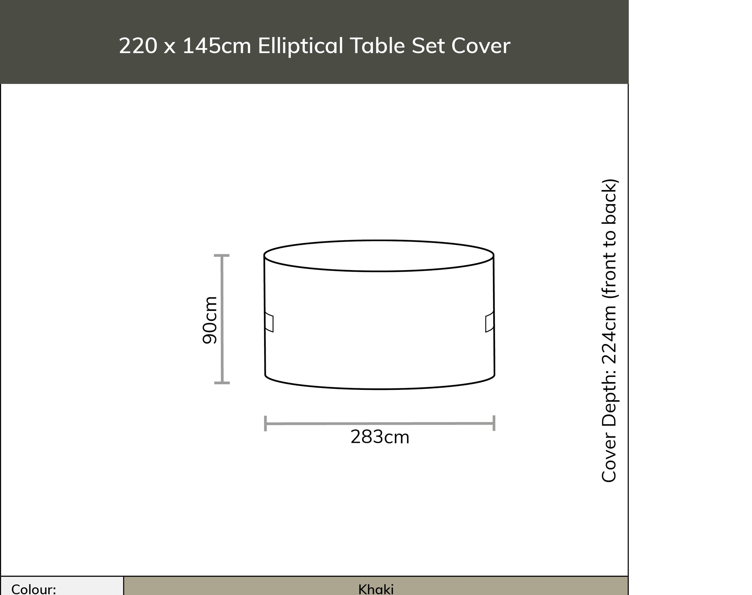 | Includes | Cover for one 220 cm Ă— 145 cm elliptical table set with chairs |