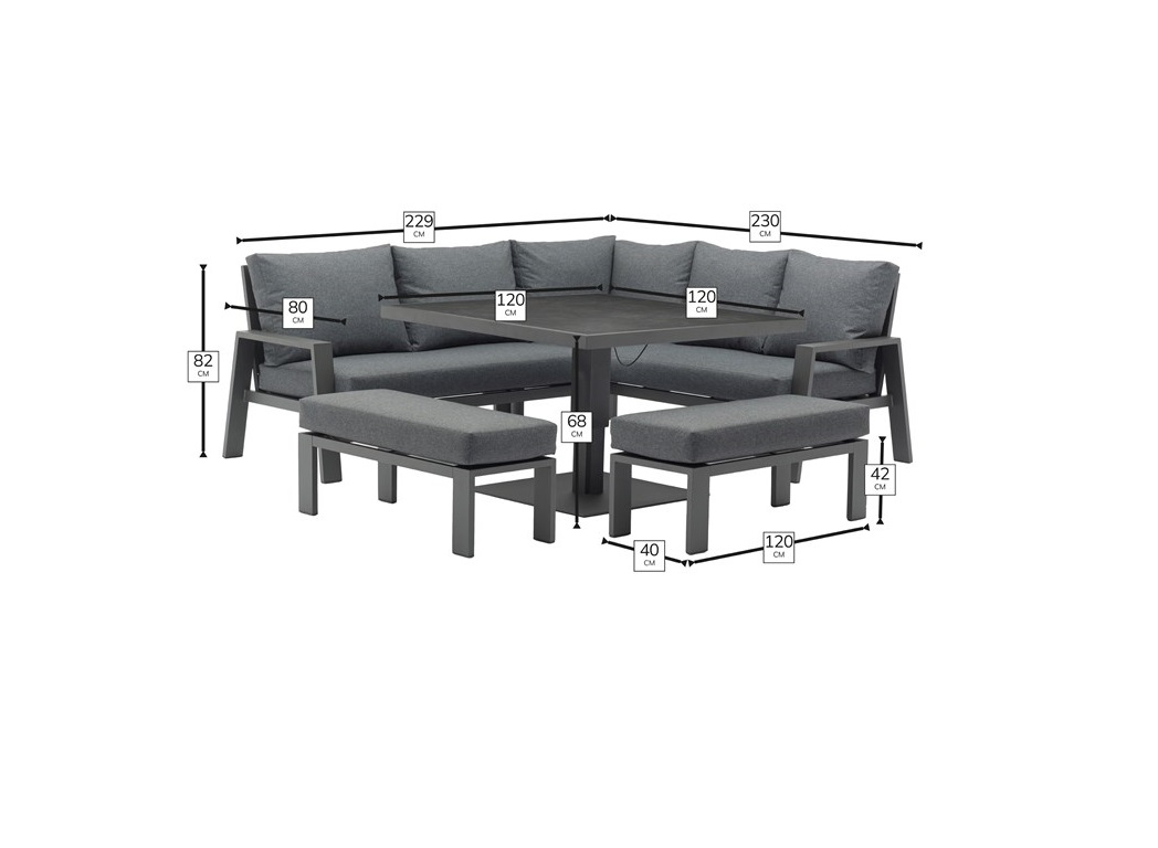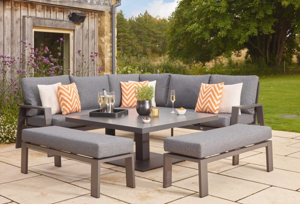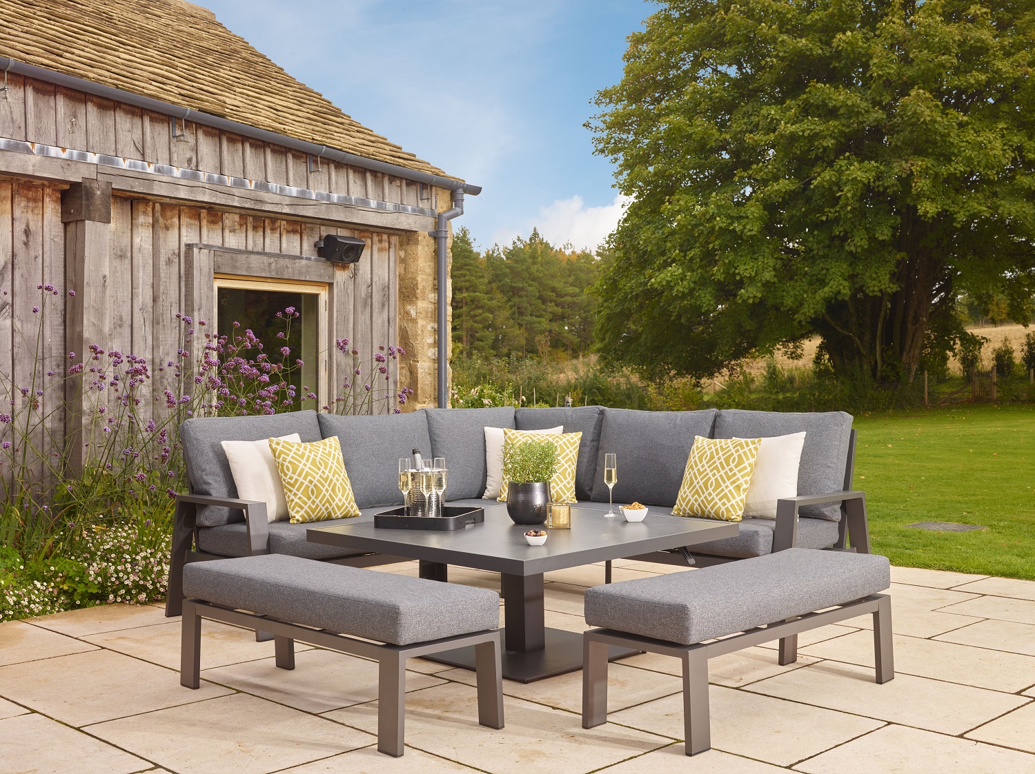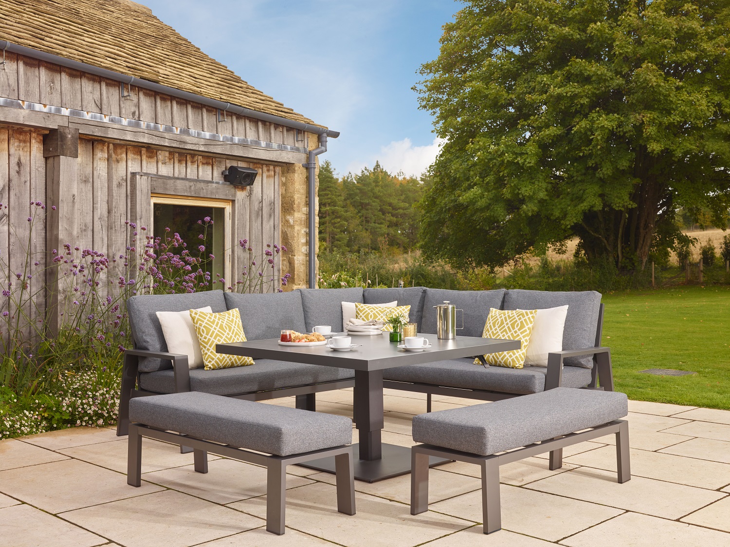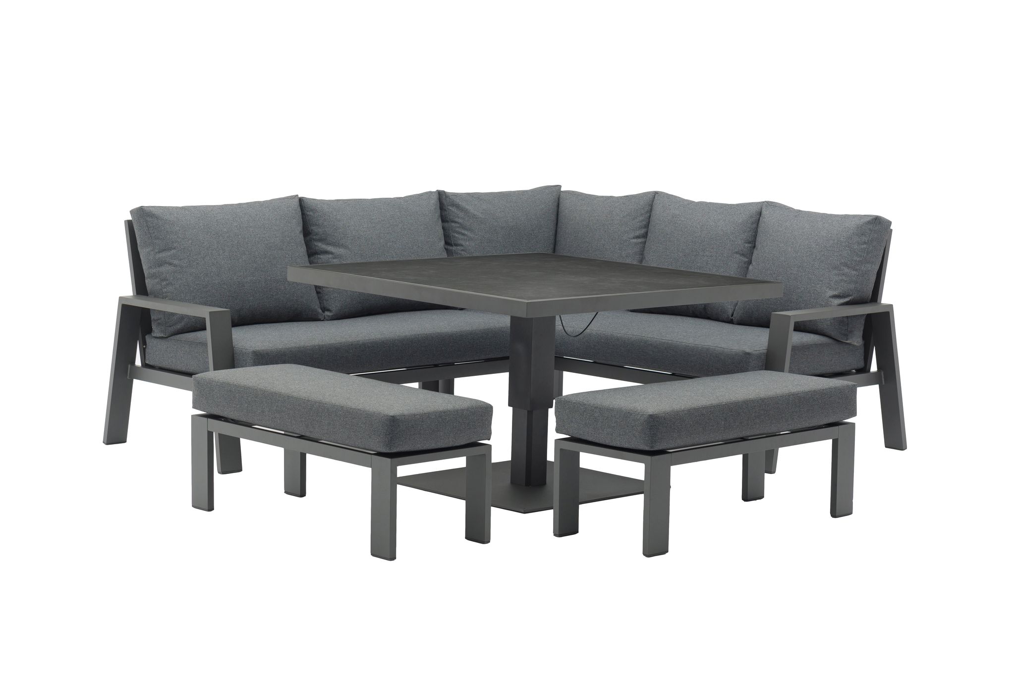 Bramblecrest Amsterdam Square Sofa Set with Adjustable Piston Table & 2 Benches