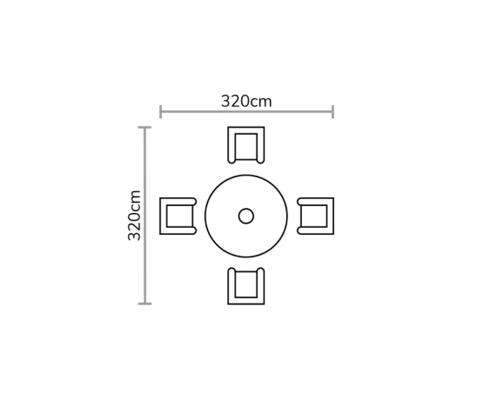 – Dimensions (cm). Table: H74 x W/D122 x L122, Chair: H95 x W/D71 x L63