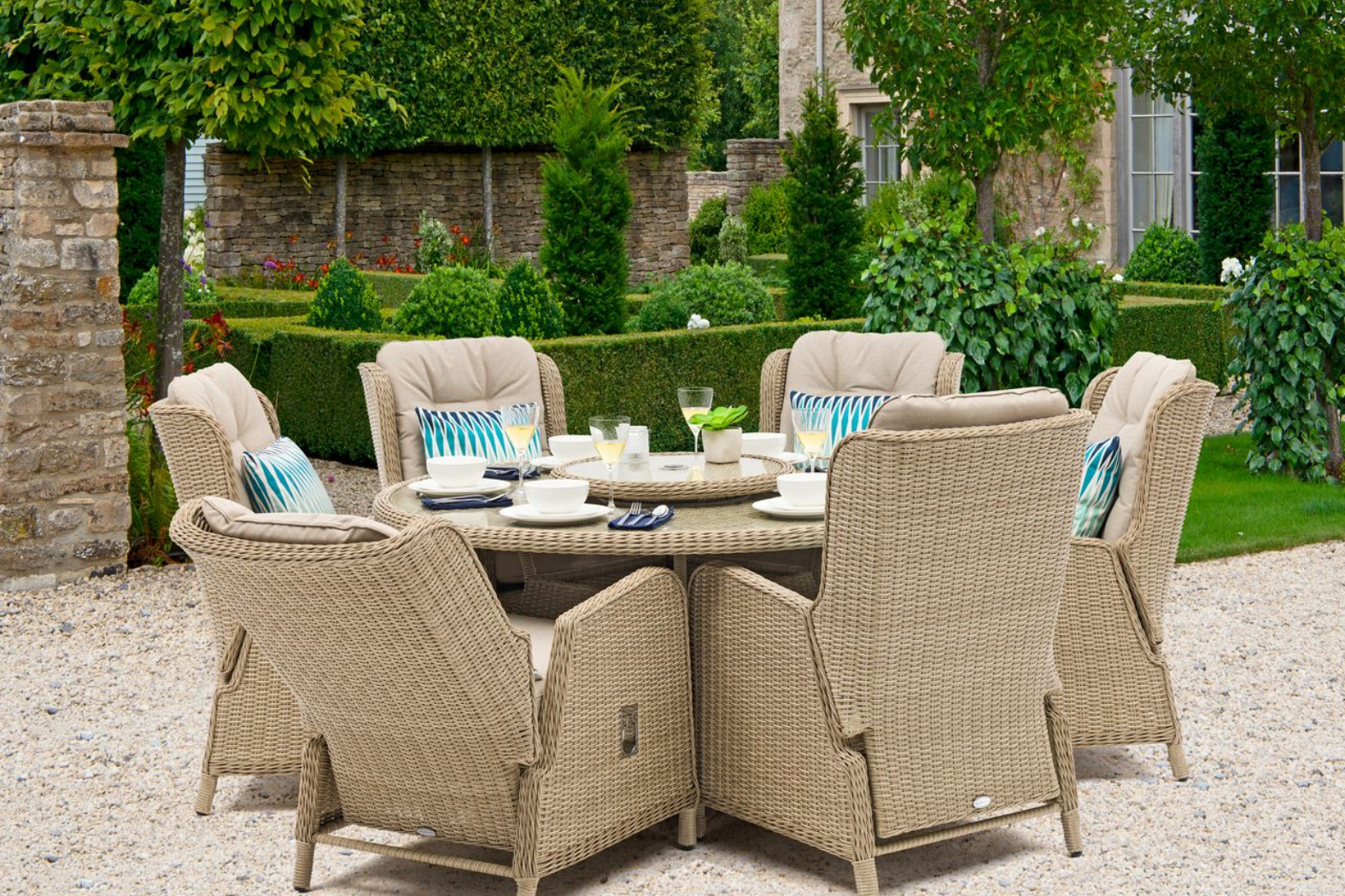 The Bramblecrest Chedworth range is a premium collection with timeless style. The table-tops are all made of ceramic or tempered glass, making them sturdy, simple to clean and suitable for year-round use. For added comfort, the seat bases and backs of the chairs feature deep-filled cushions.