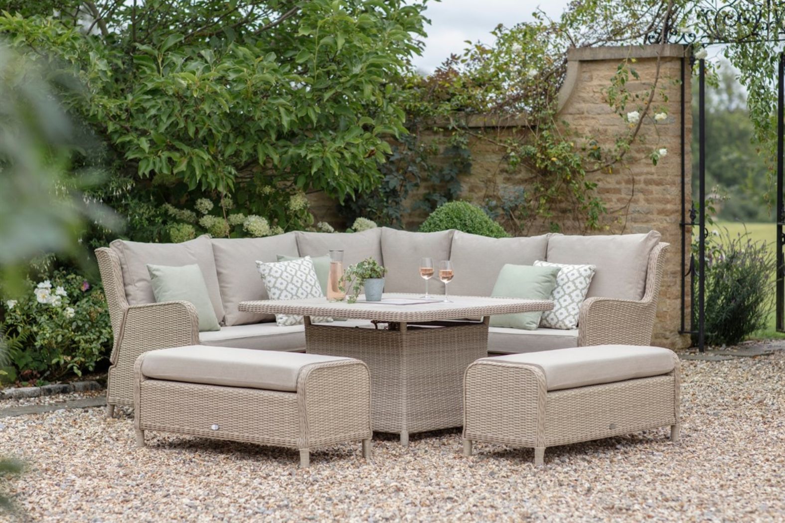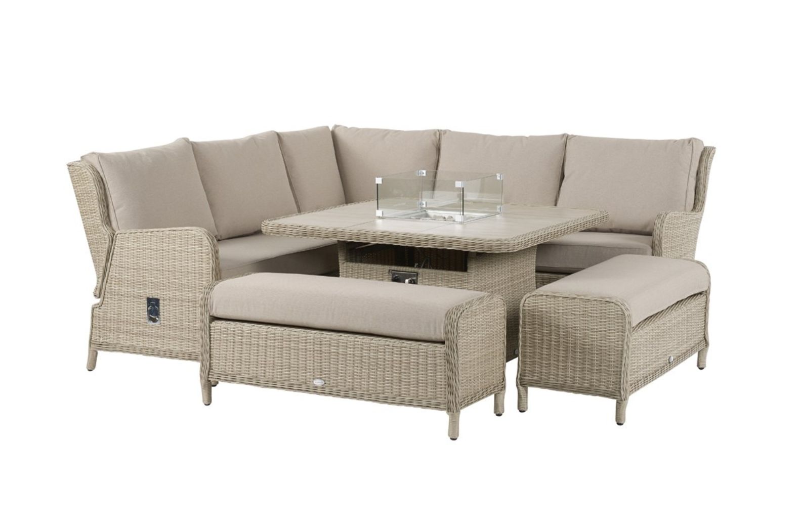 Bramblecrest Chedworth Corner Firepit Set with Reclining Back Sandstone