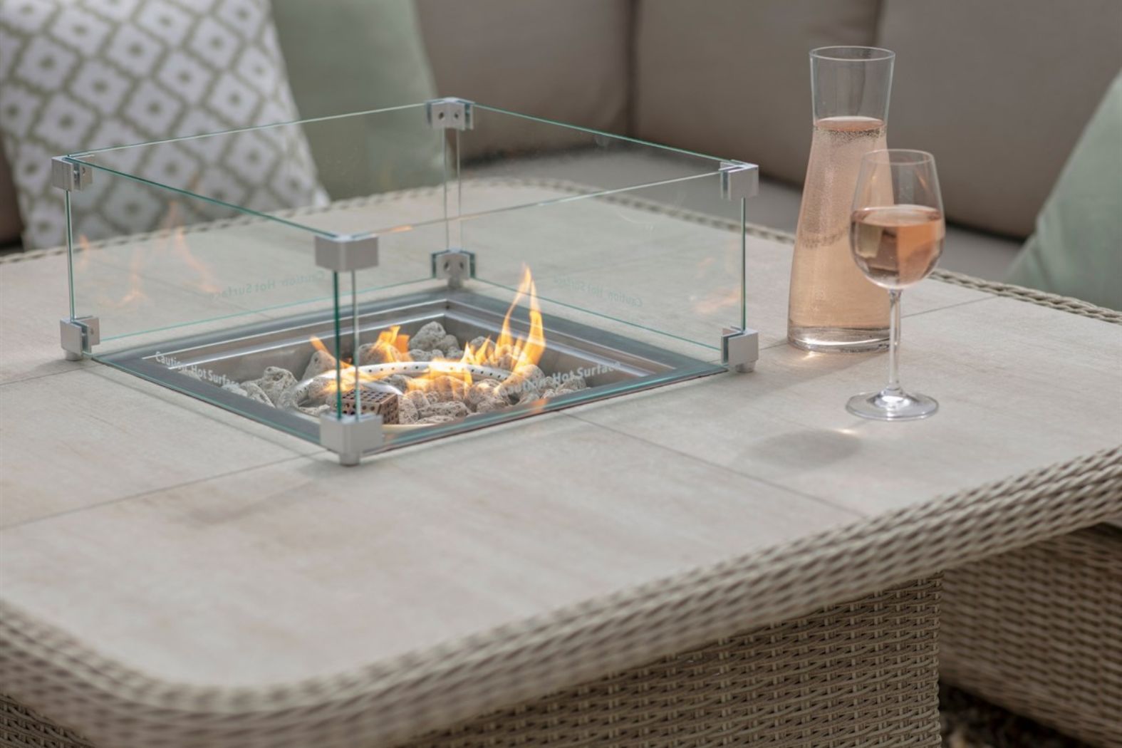 This firepit table transforms your outdoor area into a flexible entertaining zone. Simply lift the central ceramic tile to reveal the gas firepit. Furthermore, the protective glass guard enhances safety while delivering an attractive flame display. In addition, the table converts easily from dining surface to fire feature, allowing seamless transitions from afternoon meals to evening warmth.
