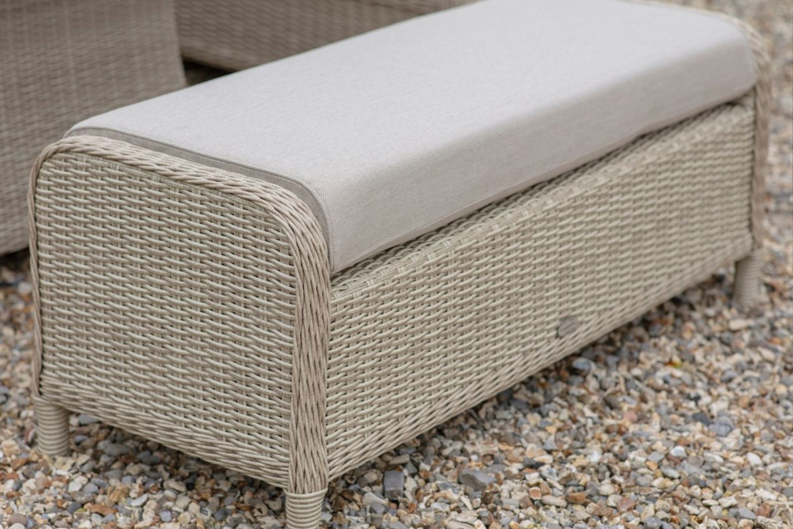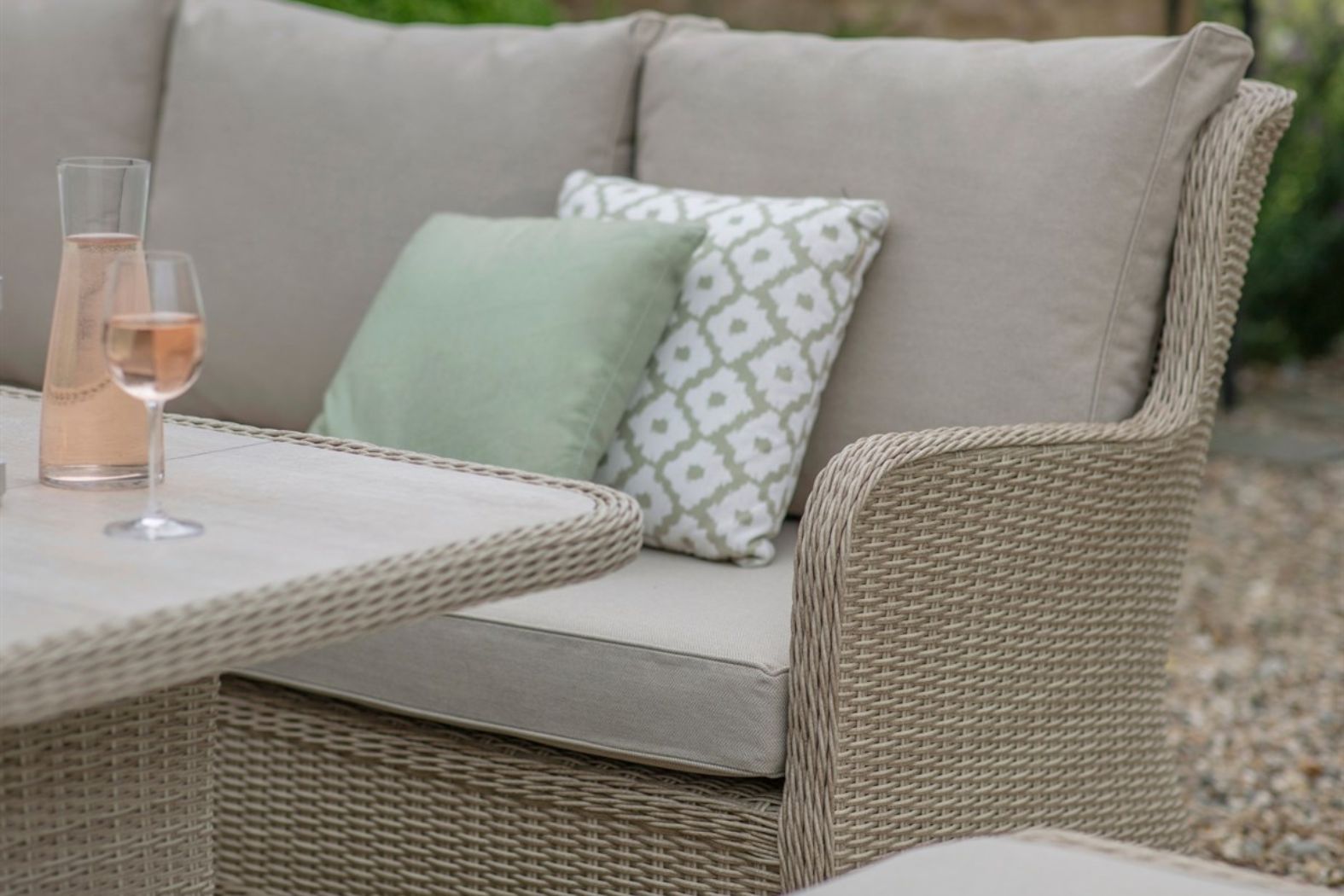 The Sandstone weave gives the Chedworth Corner Firepit Set a refined aesthetic that suits many garden styles. Moreover, the all-weather synthetic rattan resists UV fading. In addition, the lightweight yet robust aluminium frame prevents rust and ensures long-term stability. These materials provide dependable performance in every season.
