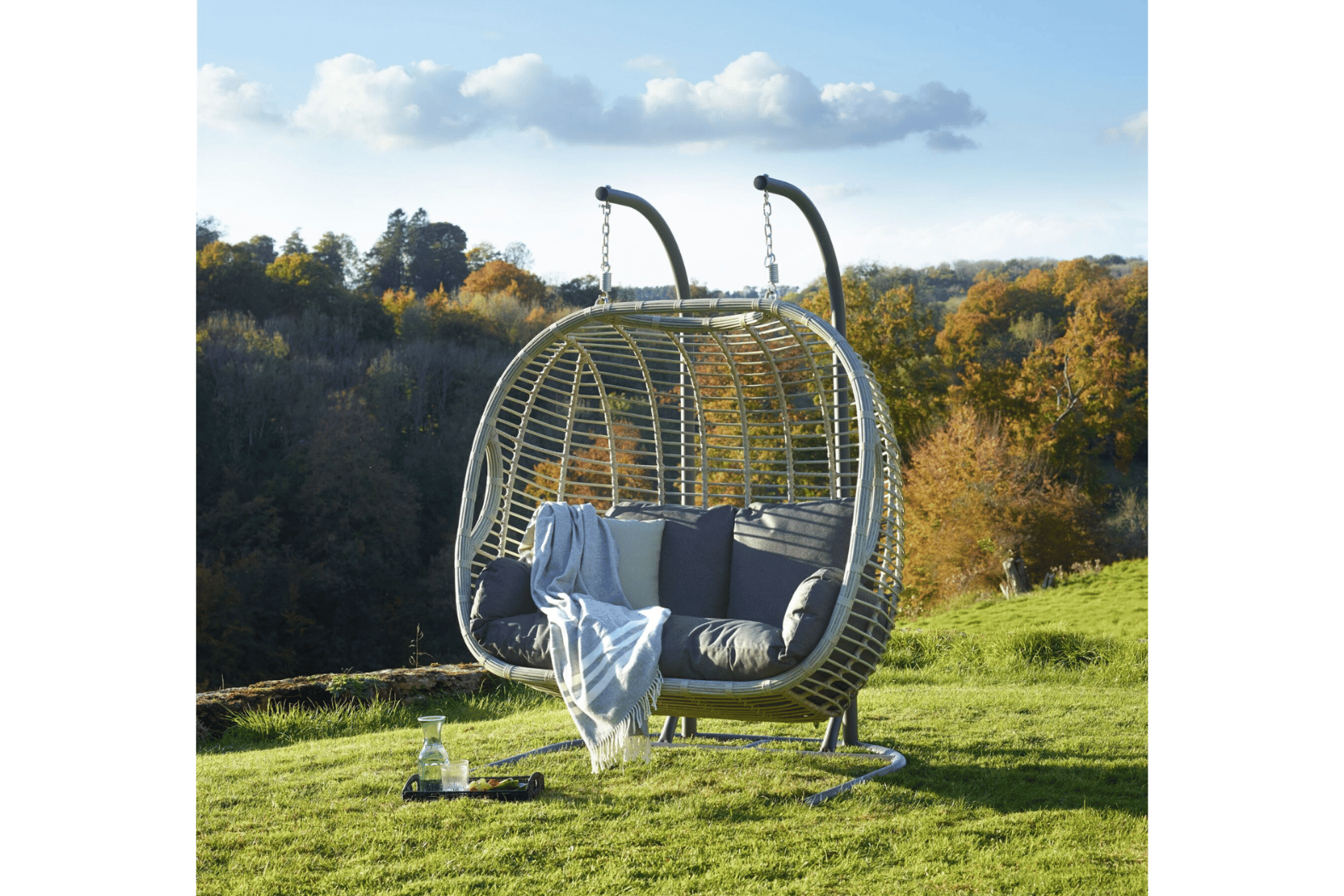 This eye-catching Bramblecrest Chedworth Double Cocoon Chair – Dove Grey is the perfect place to unwind.For collection only, or local delivery can be arranged.
