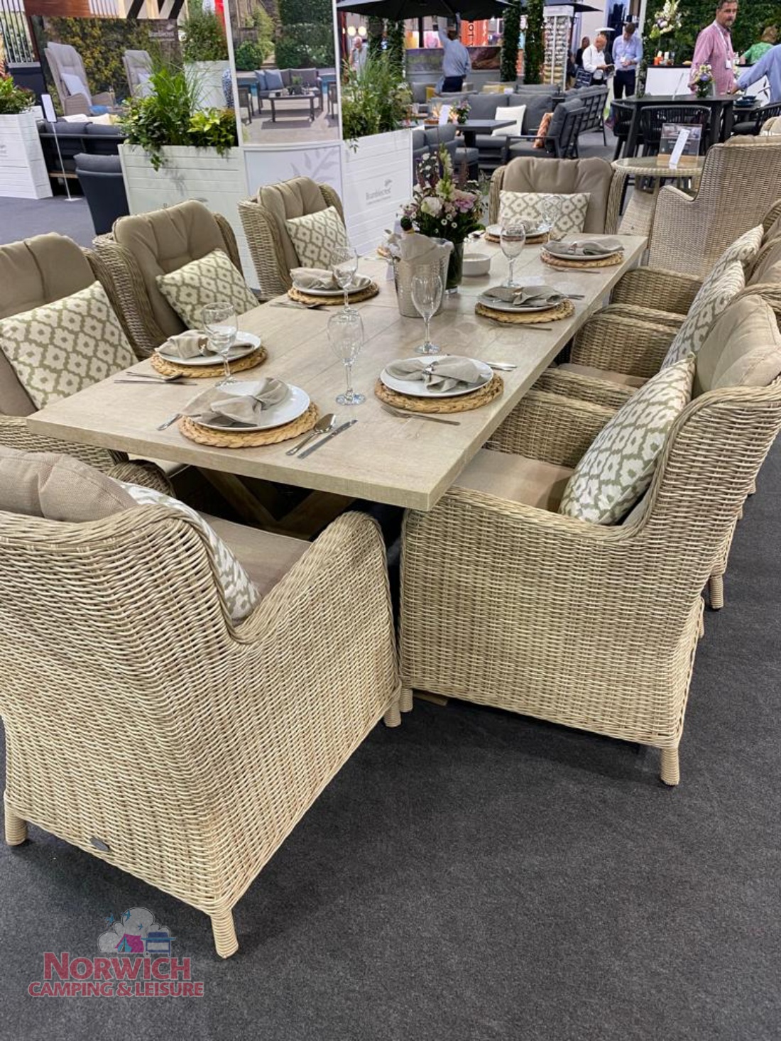 Bramblecrest Chedworth Rectangular Ceramic Table & 8 Chairs – Sandstone