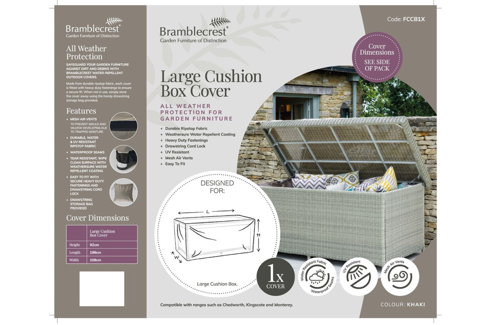 The Bramblecrest Large Cushion Box Cover offers a tailored safeguard for your outdoor cushion-storage box so you can store cushions outside with confidence. It fits the large cushion box configuration precisely and shields the box from rain, sun damage, tree sap and dirt, helping you use your outdoor furniture more easily. Furthermore, the precise fit means you avoid excess material flapping in the wind — the cover sits neatly and securely.