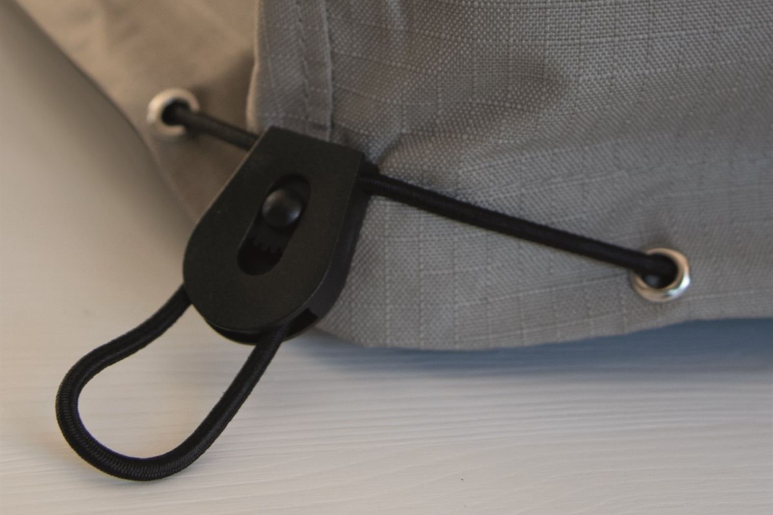 You’ll find the fastenings — draw-cord toggles and straps — allow you to tighten the cover for a snug fit in all seasons, including blustery conditions.