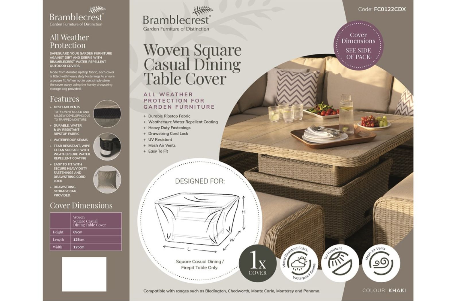 Bramblecrest Rattan Square Casual Dining Table Cover