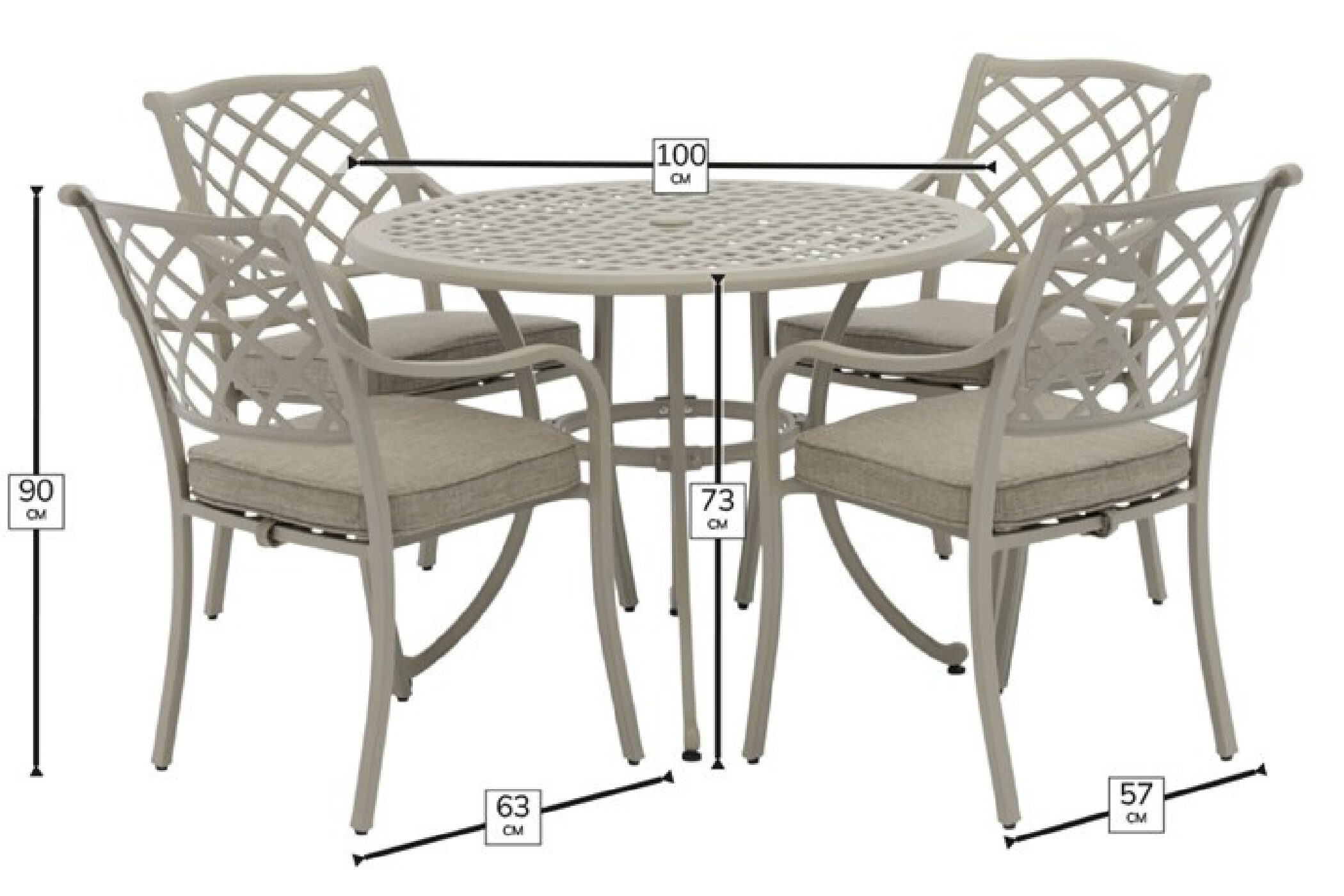 The set is not only visually appealing but also highly functional, providing a comfortable and durable dining space for friends and family gatherings. The cast aluminium construction ensures longevity and resistance to the elements, making it perfect for year-round use. The parasol offers essential shade on sunny days, allowing you to enjoy the outdoors without concern for the harsh midday sun.