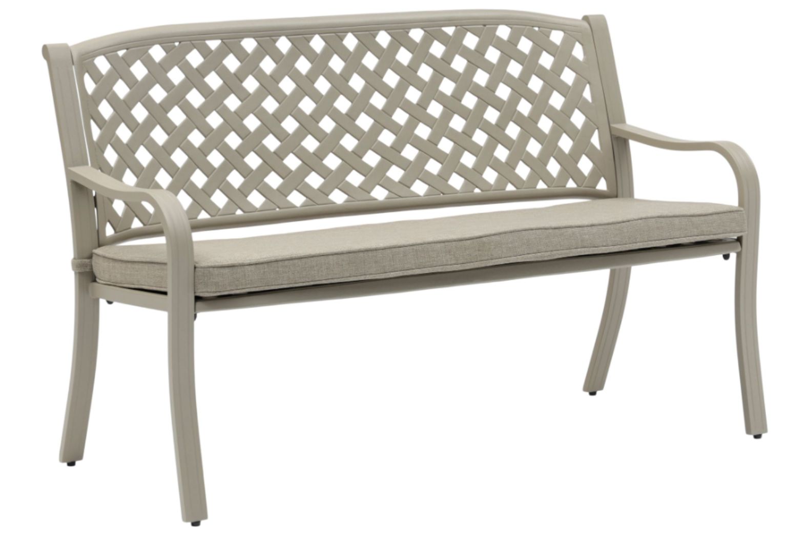 The strong cast-aluminium frame offers a rust-free and reliable structure. Because of its light weight, the bench is easy to move around the garden when needed. The stone-coloured powder coating also enhances durability and blends naturally with planting and garden décor. Furthermore, the frame needs only minimal cleaning to stay looking its best.