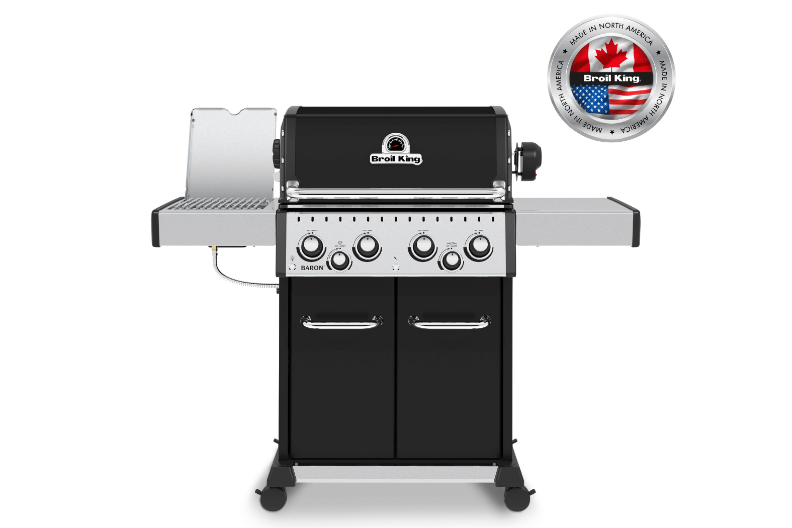 The Broil King Baron 490 IR Gas BBQ is a welcome addition to any BBQing event! Packed with features, all available to give that quality Broil King grilling style. Featuring four stainless-steel Dual-Tube primary burners as well as a stainless-steel rear rotisserie burner and the new infra-red sizzle side burner. Which is perfect for searing your meats, the Baron 490 really is praiseworthy.