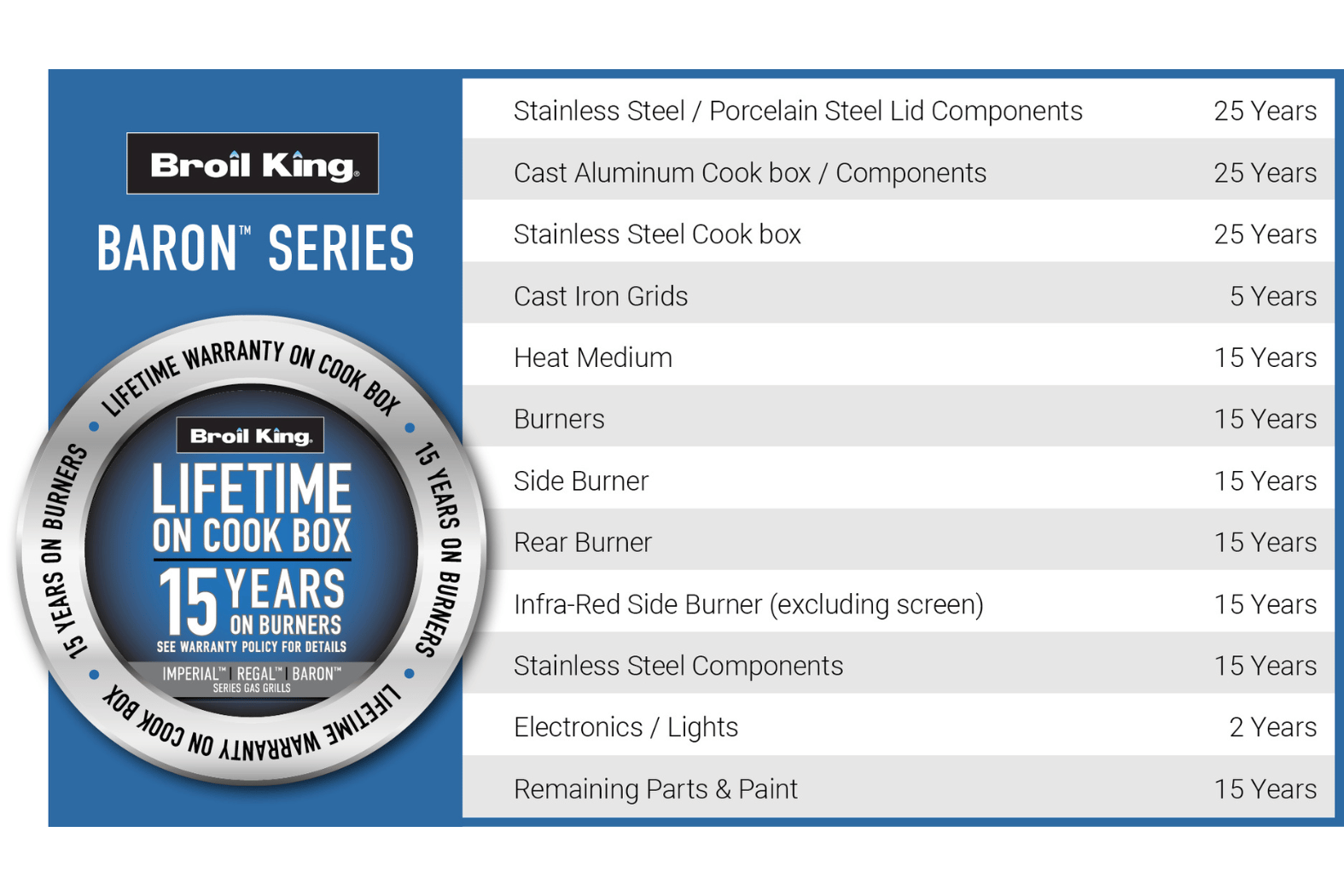 - Lifetime cook box warranty