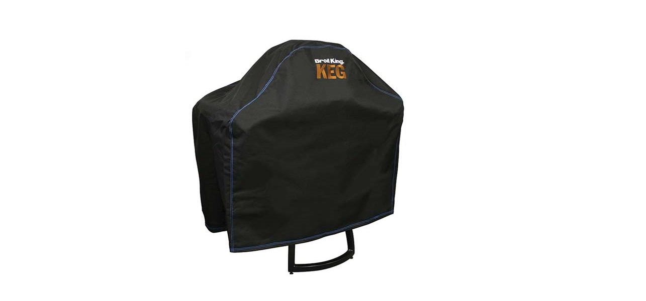 The Broil King Keg Grill Cover (fits 5000 & 4000) is finished with a Broil King Keg logo and the seams are sewn with a blue ‘baseball’ stitching for a distinctive appearance.