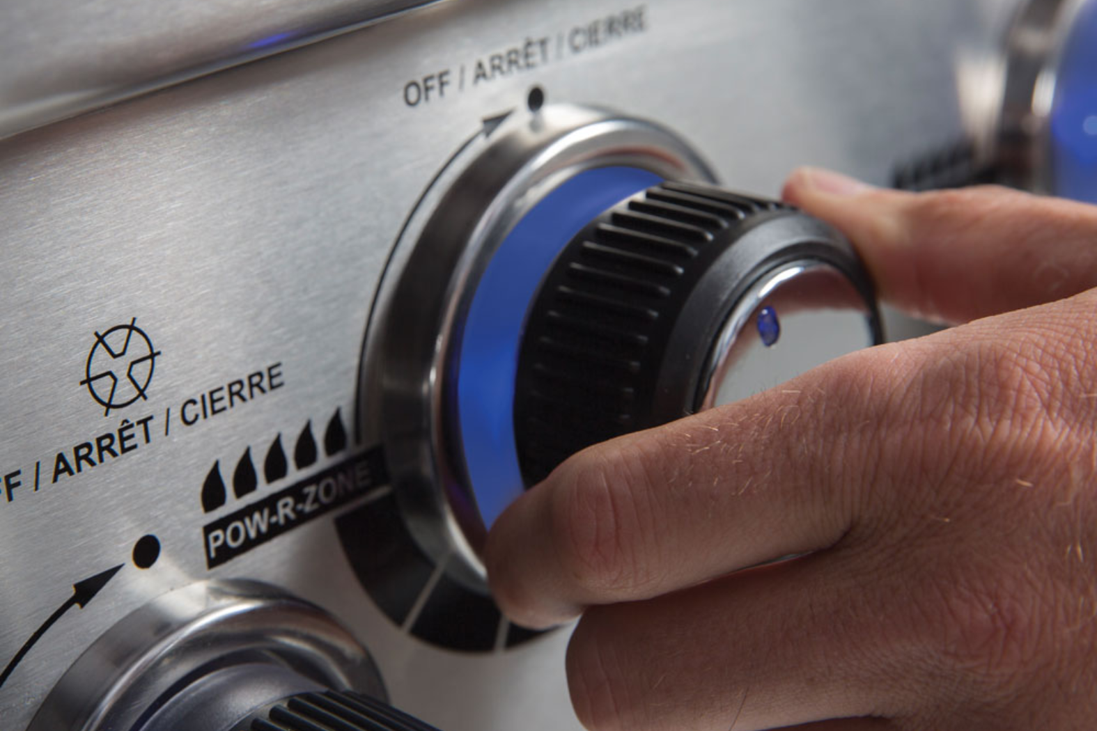 This grill features five Dual-Tube™ stainless steel burners, an integrated side burner and a rear rotisserie burner for complete outdoor cooking. The stainless steel cookbox with cast aluminium end caps delivers long-term durability and excellent heat retention. Moreover, the illuminated control knobs and the enclosed cabinet add style and practicality in the evenings.