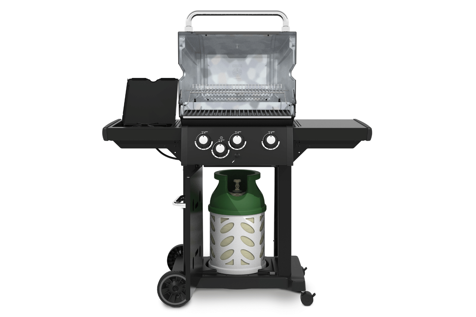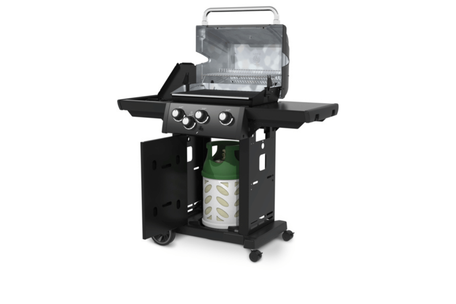 Designed with practicality in mind, the Royal 340 Shadow comes with drop-down side shelves to maximise space and fold away when not in use. In addition, the enclosed cabinet base stores your gas bottle neatly and keeps the silhouette clean. Cast aluminium and porcelain-enamelled components deliver durability and heat retention for years of use. Moreover, large wheels and caster locks provide both mobility and stability for patio or garden setups.