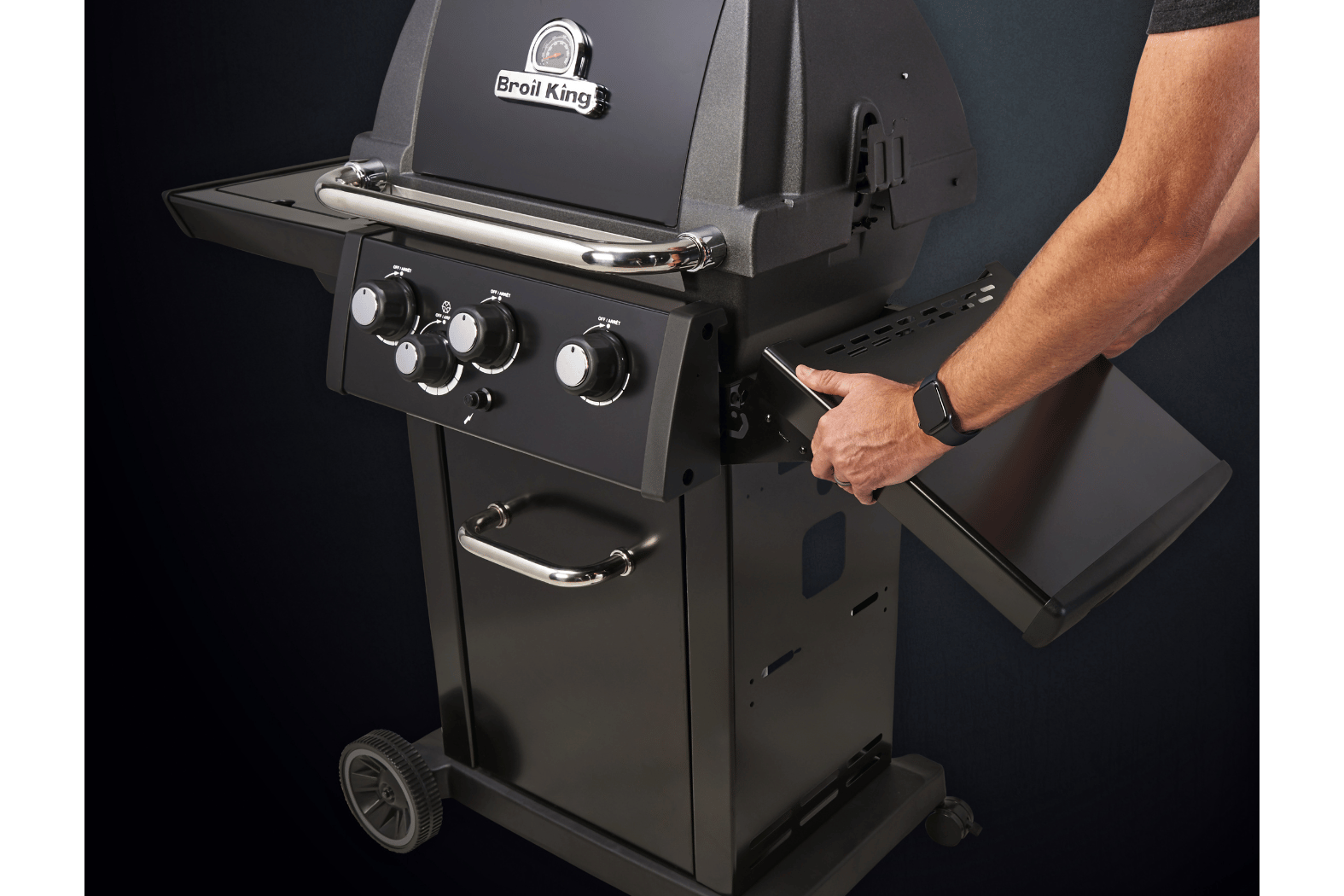 The Royal 340 Shadow’s framework blends heavy-duty materials with innovative engineering. Cast-iron cooking grids lock in heat for superior searing. The Therma-Cast™ aluminium cook-box and powder-coated cabinet deliver strength through seasons. Moreover, Broil King backs this model with a 10-year warranty on the cook box, 5 years on burners and 2 years on other parts — offering real peace of mind.