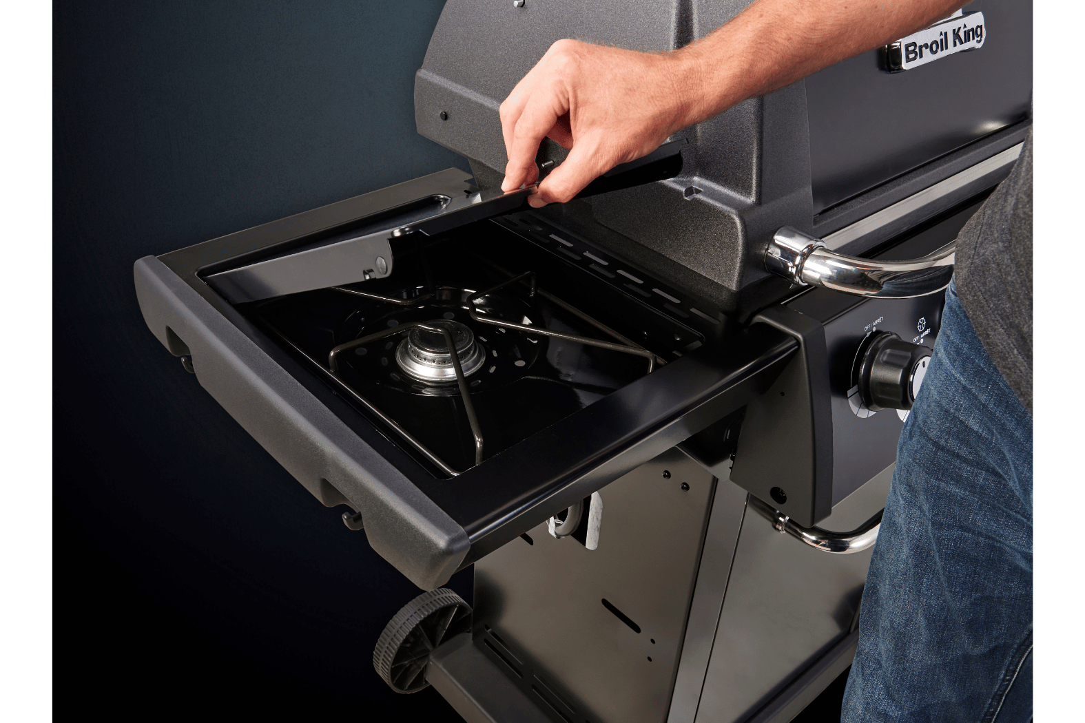 The Royal 340 Shadow delivers robust heat with three stainless-steel Dual-Tube™ burners and an 8.8 kW main burner output for fast, even cooking across the 2,130 cm² primary cooking surface. The Flav-R-Wave™ cooking system vaporises drippings to infuse flavour and reduce flare-ups. A side burner adds 2.7 kW for sauce and side-dish prep, while the Sure-Lite™ ignition lets you grill in seconds.