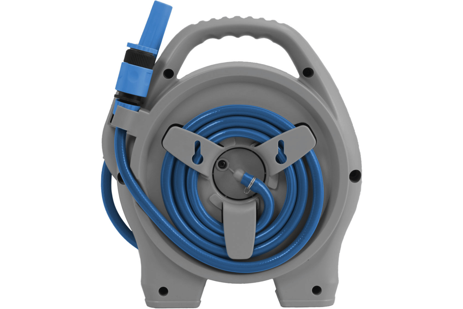 With a compact reel housing (approx. 28 × 15 × 30 cm) and a hose that rolls neatly inside, the Aquafil Pro stays tidy when not in use. The lightweight construction and built-in handle make the reel easy to carry — handy for caravans, boats, gardens, or campsite use. Because the hose is flexible and torsion-resistant, you can unroll only the length you need, reducing waste and making storage simpler.
