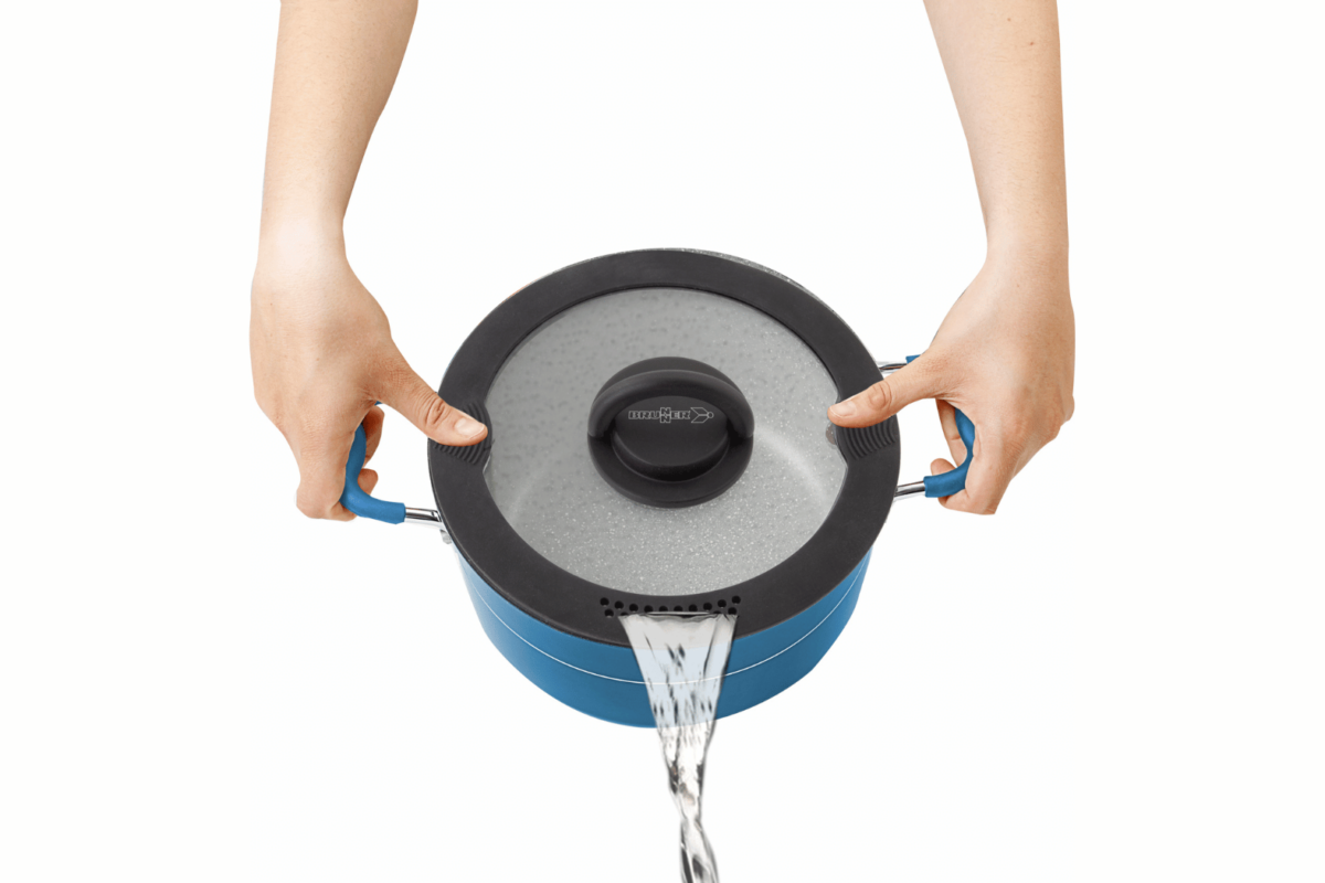 The Carezza Magnetogrip set uses high-quality recycled aluminium with an induction-compatible base and a ceramic non-stick surface. This gives you even heat distribution and makes cleaning up after meals quick and straightforward. Moreover, the non-stick coating supports healthier cooking with less oil, and reduces food sticking or burning — helpful when cooking on the move.