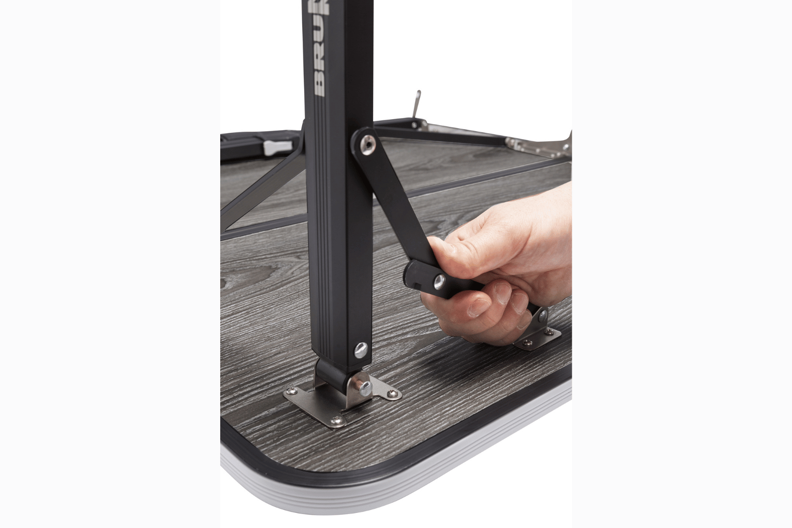 Let your outdoor dining and gear-prep area reach a new level of sophistication with the Brunner Elù Duplit Folding Table. This table combines ultra-lightweight portability, robust construction and clever design to meet the demands of campervanners, motor-home users and leisure campers alike. Moreover, its height-adjustable legs and space-saving folding top let you use it for meals, crafts or gear layout. In addition, the weather-resistant tabletop keeps performing even in damp or windy conditions. Whether you’re parked for a weekend or enjoying an extended stay, the Elù Duplit NG gives you a high-quality surface that works.