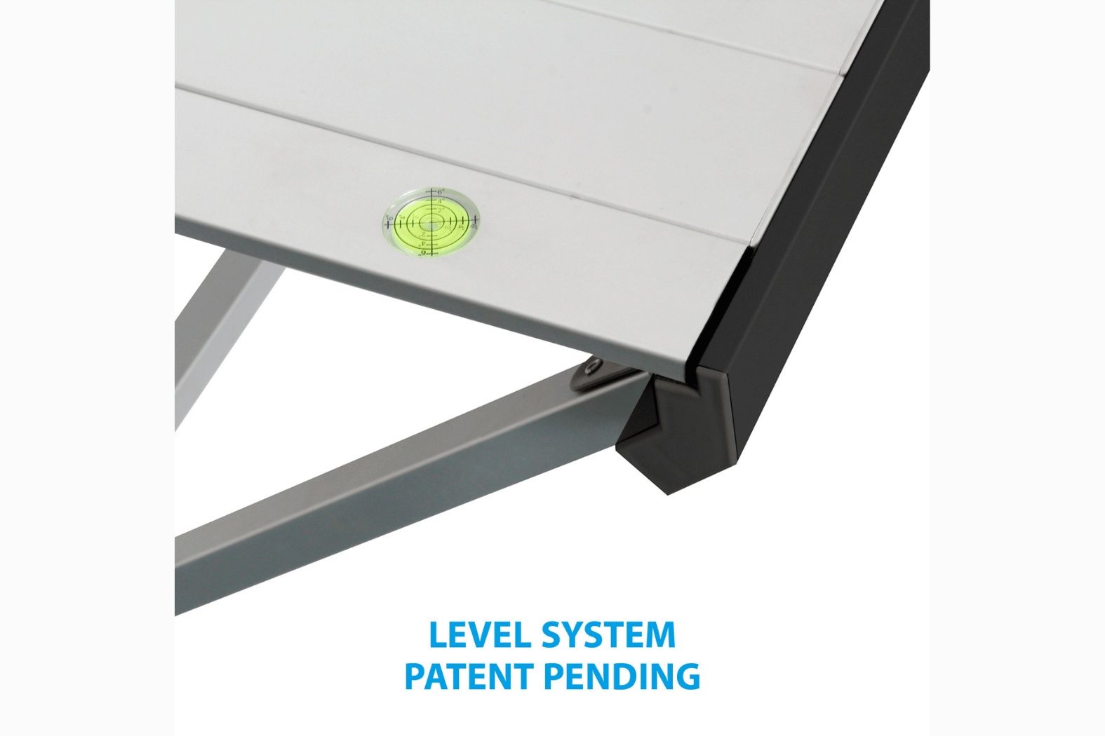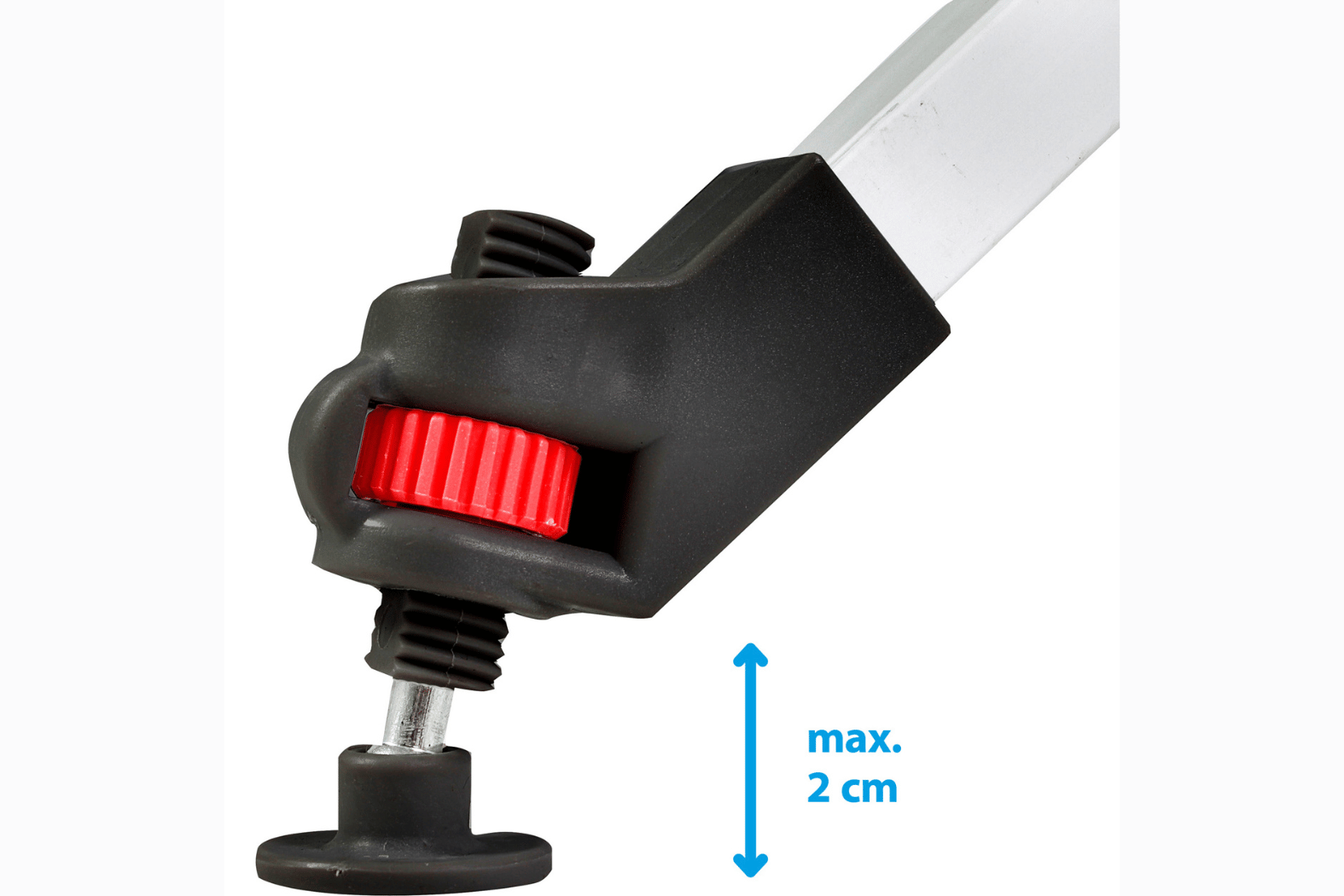- Height-adjustable leg and built-in level system for uneven ground