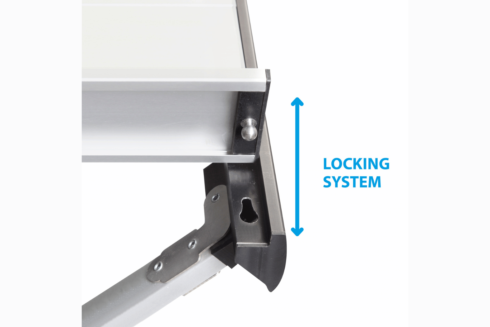 - Roll-top tabletop with silver-anodised slats (Gapless system)