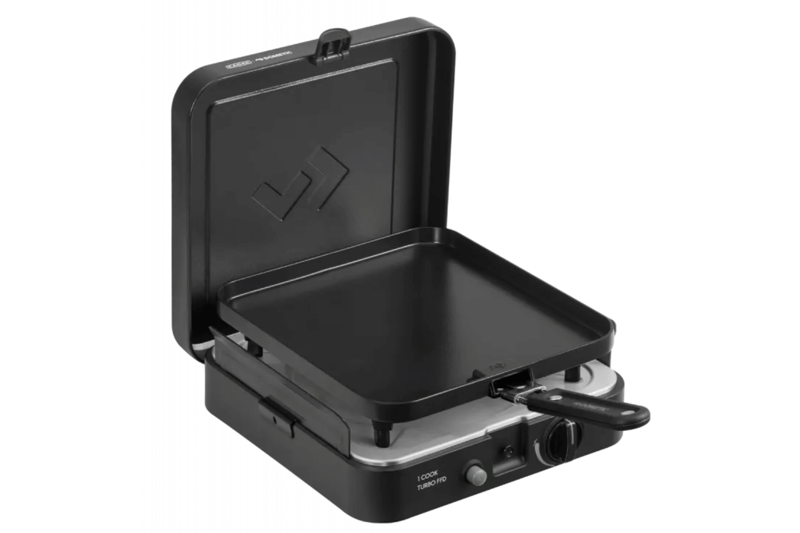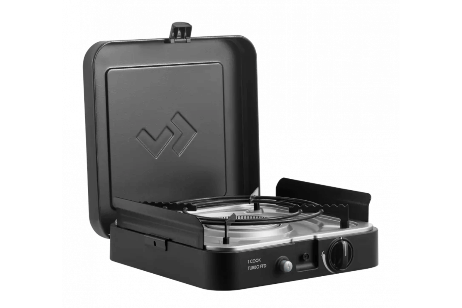 The Cadac 1 Cook Turbo FFD stove uses a high-efficiency “Turbo” burner that delivers strong, focused heat output while maintaining fuel efficiency. The package includes the GreenGrill ceramic flat grill plate — ideal for grilling, frying, or searing meats, fish, vegetables or pancakes. Thanks to its compact dimensions and light weight, the stove packs down neatly into the supplied carry bag, making it easy to store or transport between trips.