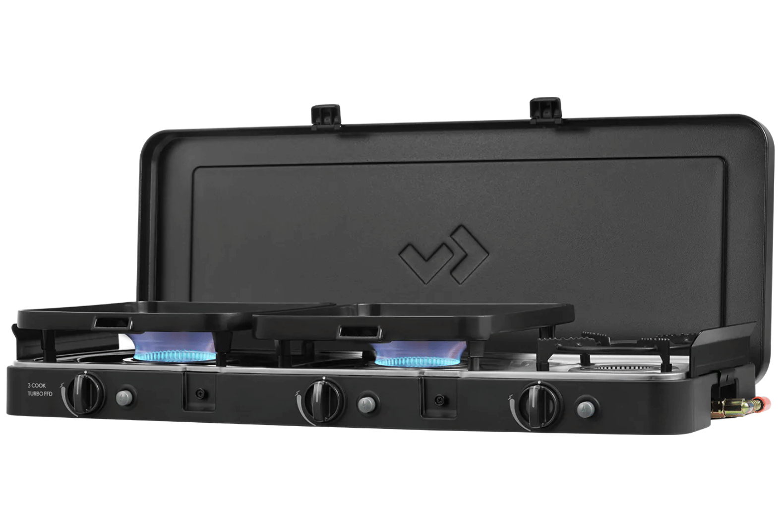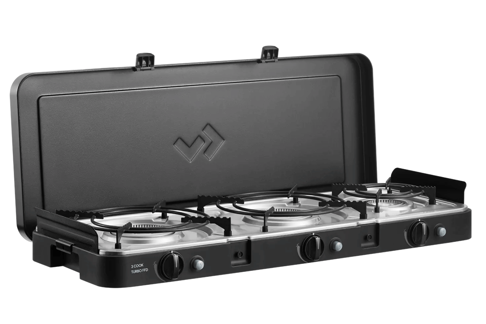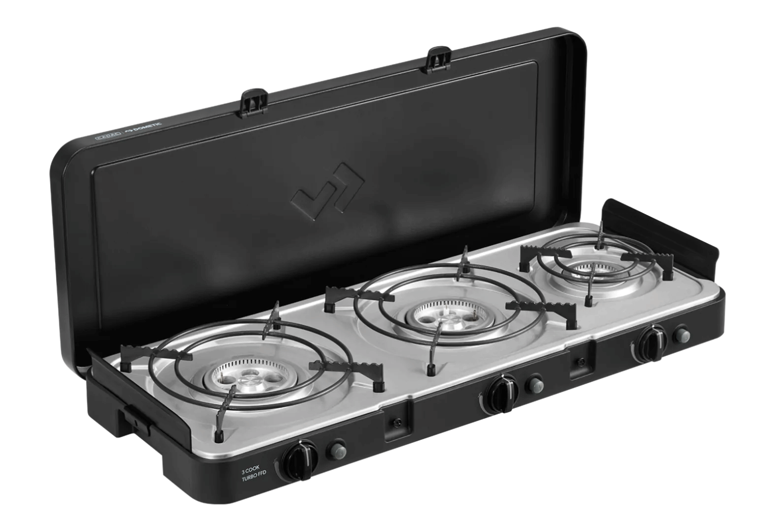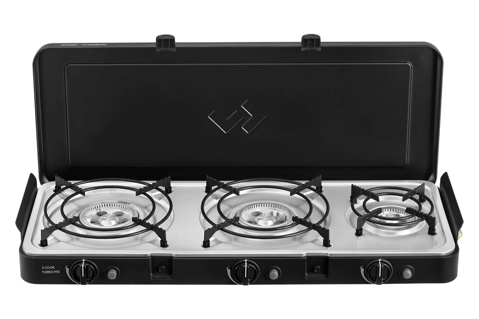 Get ready for flexible, efficient cooking anywhere with the Cadac 3 Cook Turbo FFD Deluxe QR — a powerful three-burner gas stove built for outdoor cooking, large tents, awnings, small kitchens, patios or boats. This stove combines robust performance, safety features and portability, giving you full cooking capabilities even when space is tight. Because it uses gas, this product is only recommended in well-ventilated areas to ensure safety and air quality.