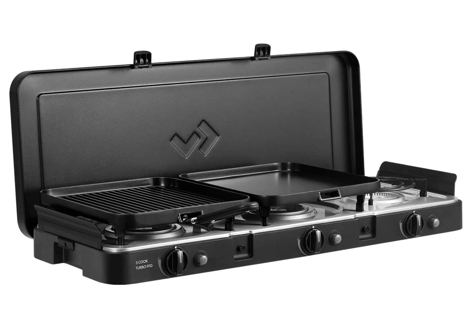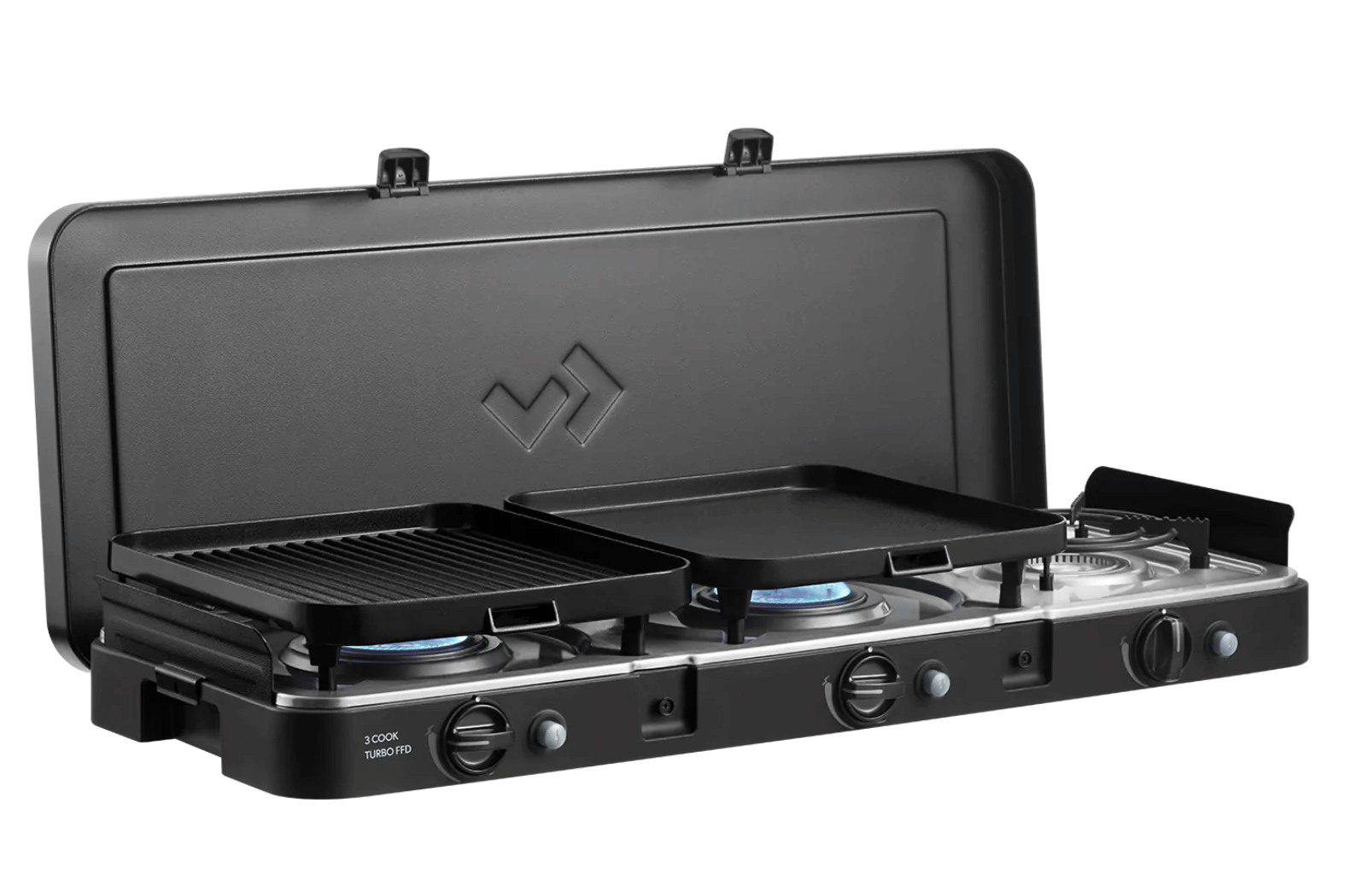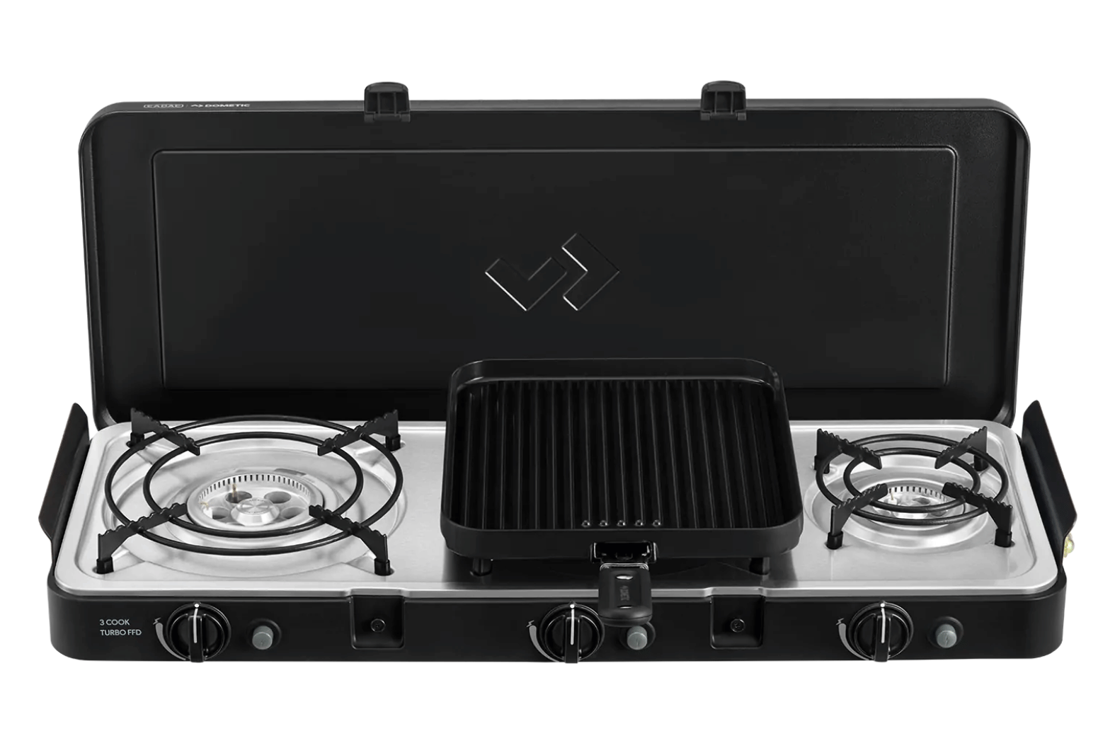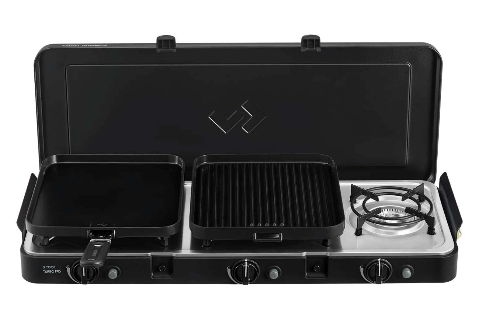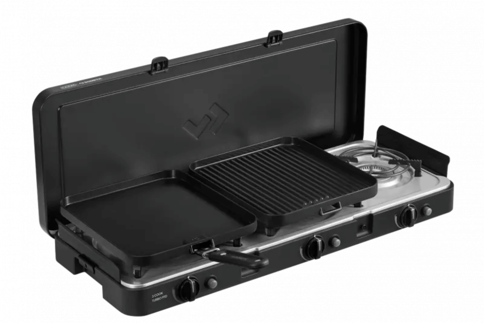 Get ready for flexible, efficient cooking anywhere with the Cadac 3 Cook Turbo FFD Deluxe QR — a powerful three-burner gas stove built for outdoor cooking, large tents, awnings, small kitchens, patios or boats. This stove combines robust performance, safety features and portability, giving you full cooking capabilities even when space is tight. Because it uses gas, this product is only recommended in well-ventilated areas to ensure safety and air quality.