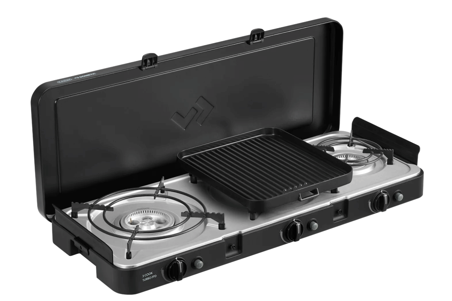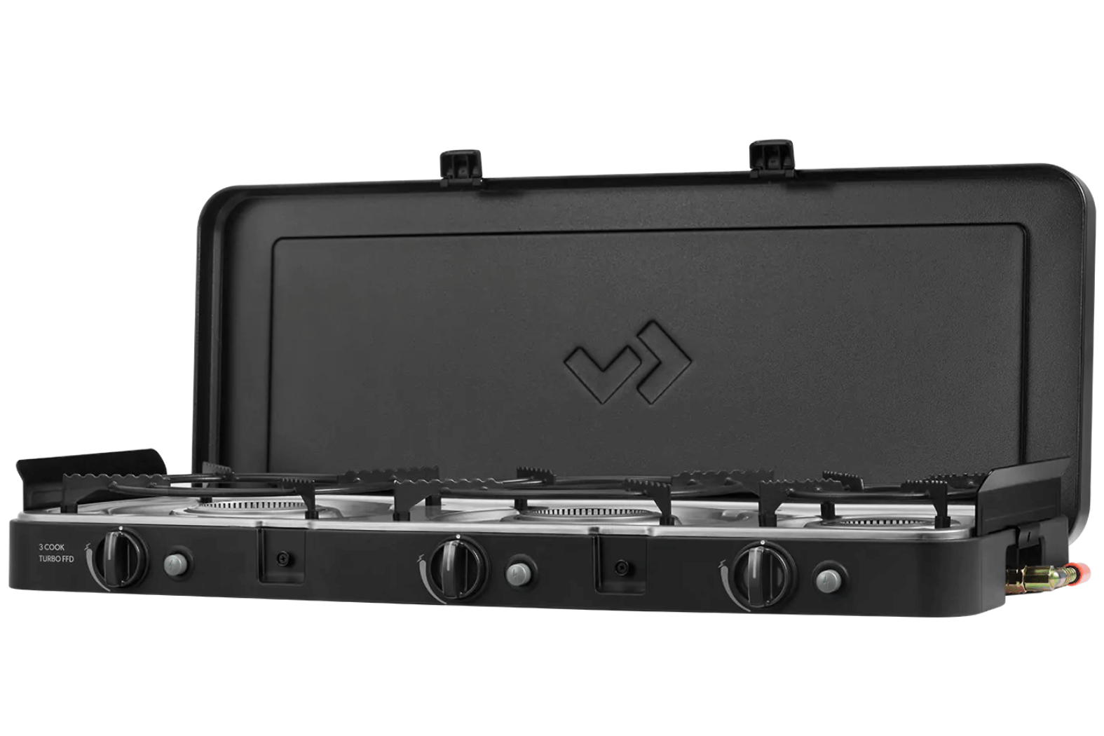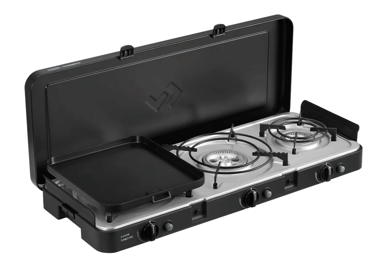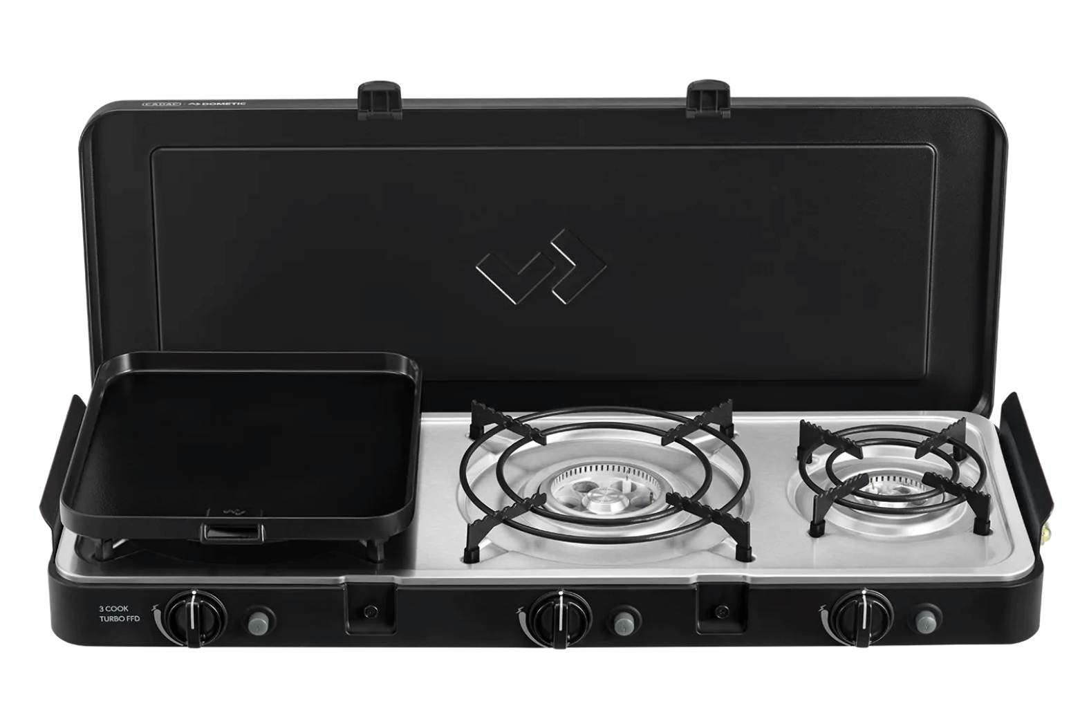 Get ready for flexible, efficient cooking anywhere with the Cadac 3 Cook Turbo FFD Deluxe QR — a powerful three-burner gas stove built for outdoor cooking, large tents, awnings, small kitchens, patios or boats. This stove combines robust performance, safety features and portability, giving you full cooking capabilities even when space is tight. Because it uses gas, this product is only recommended in well-ventilated areas to ensure safety and air quality.