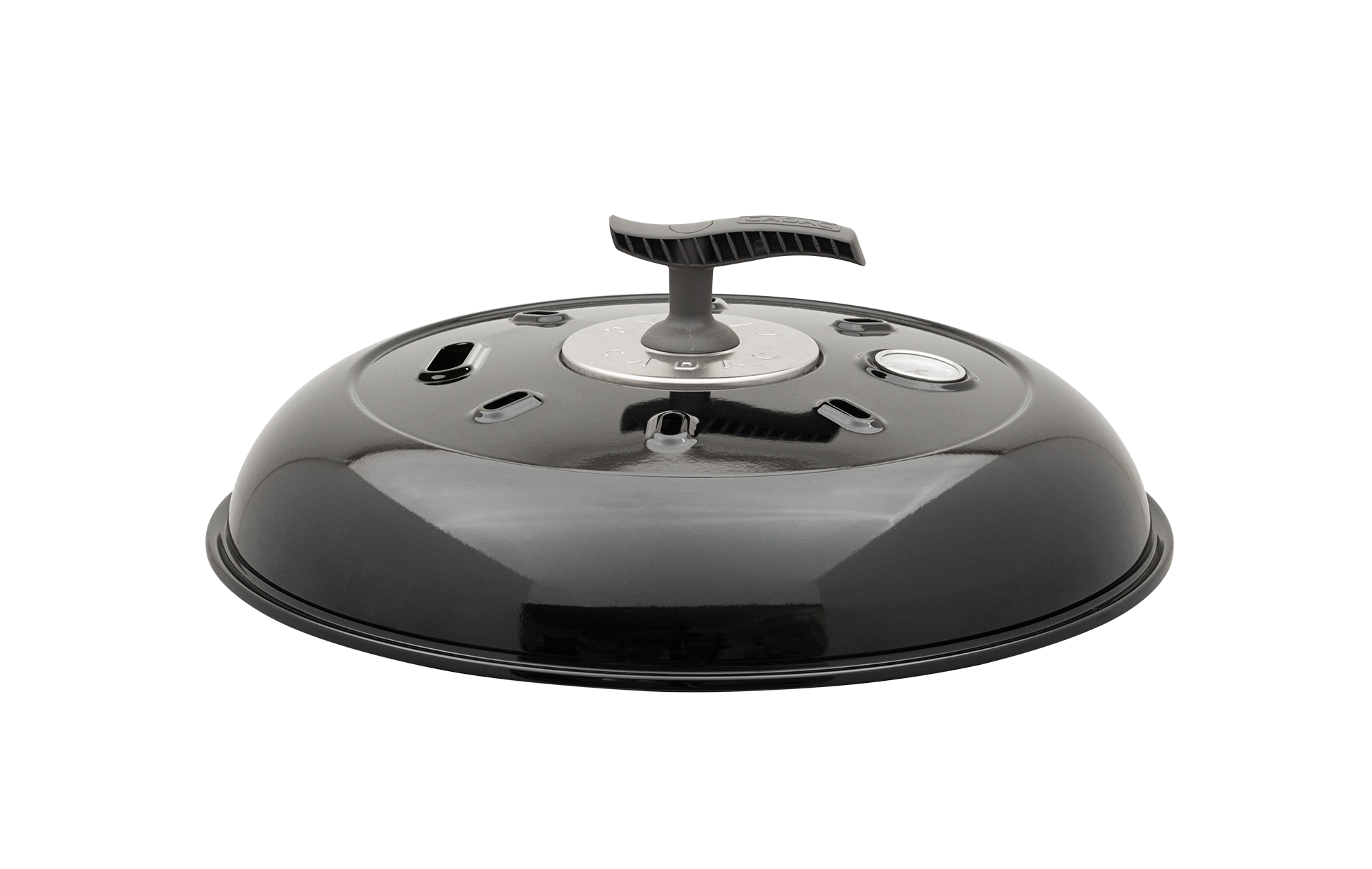 An enamelled dome lid to fit the Carri Chef 2 range of gas BBQs. It acts as a windshield by hooking on to the side of the BBQ and is fitted with a thermometer and a convenient stay-cool handle at the top of the dome. Size: 47cm