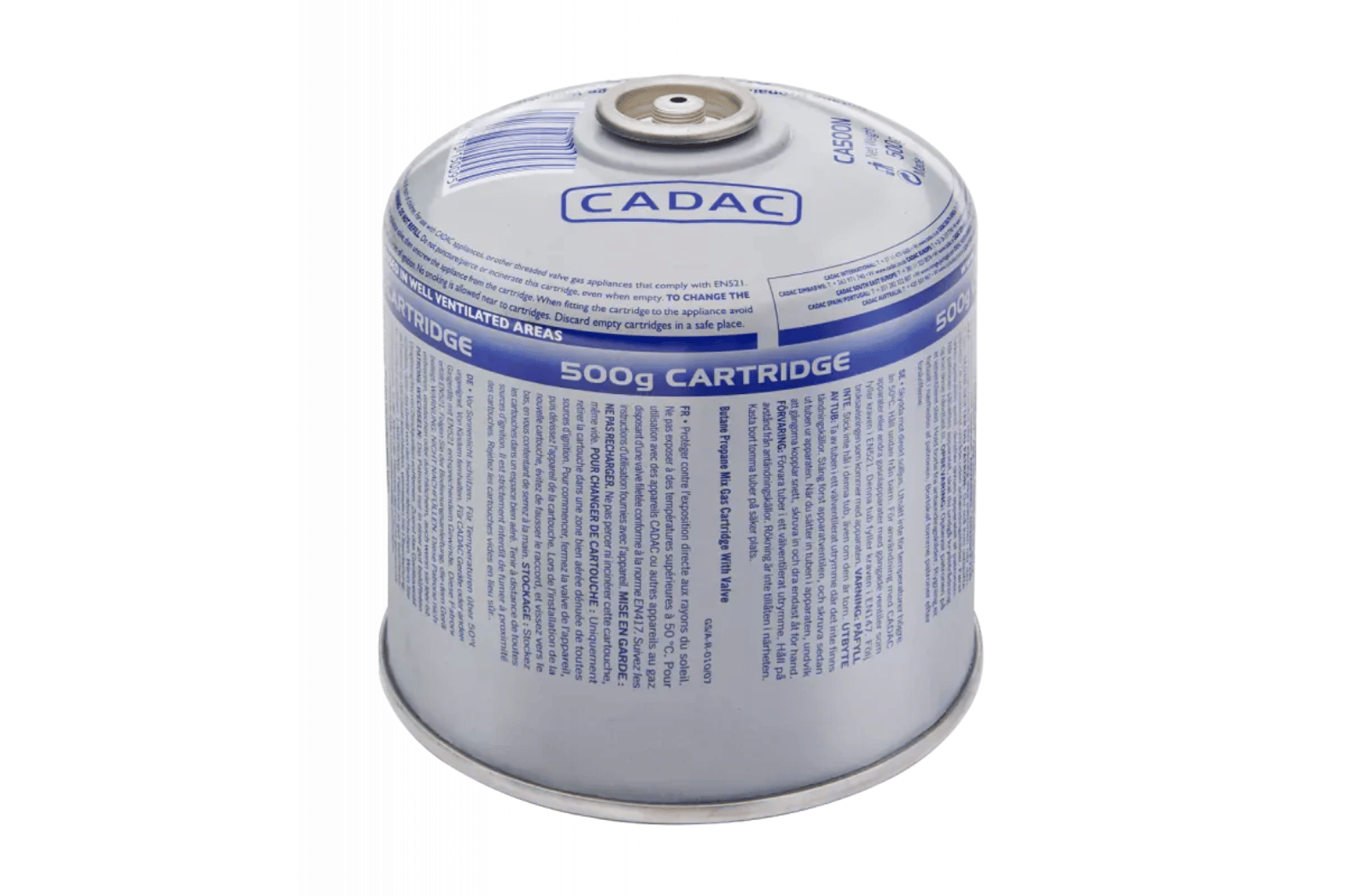 Butane/Propane gas mix cartridge, fitted with standard type EN417 threaded self-sealing safety valve.