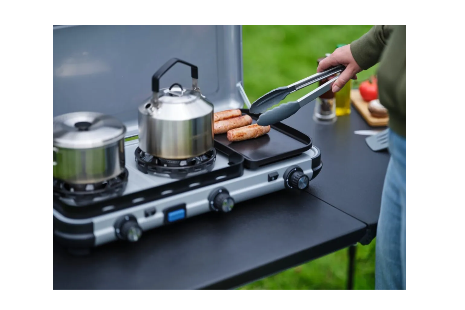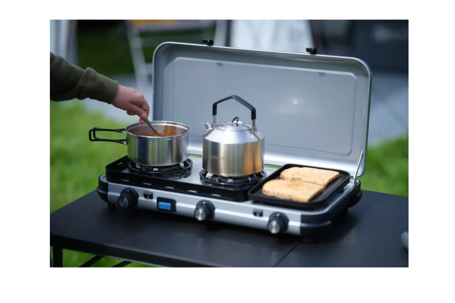 Triple Cooking Zones: The Campingaz Camping Kitchen 2 features dual 1,800 W burners plus a 900 W tube burner.
