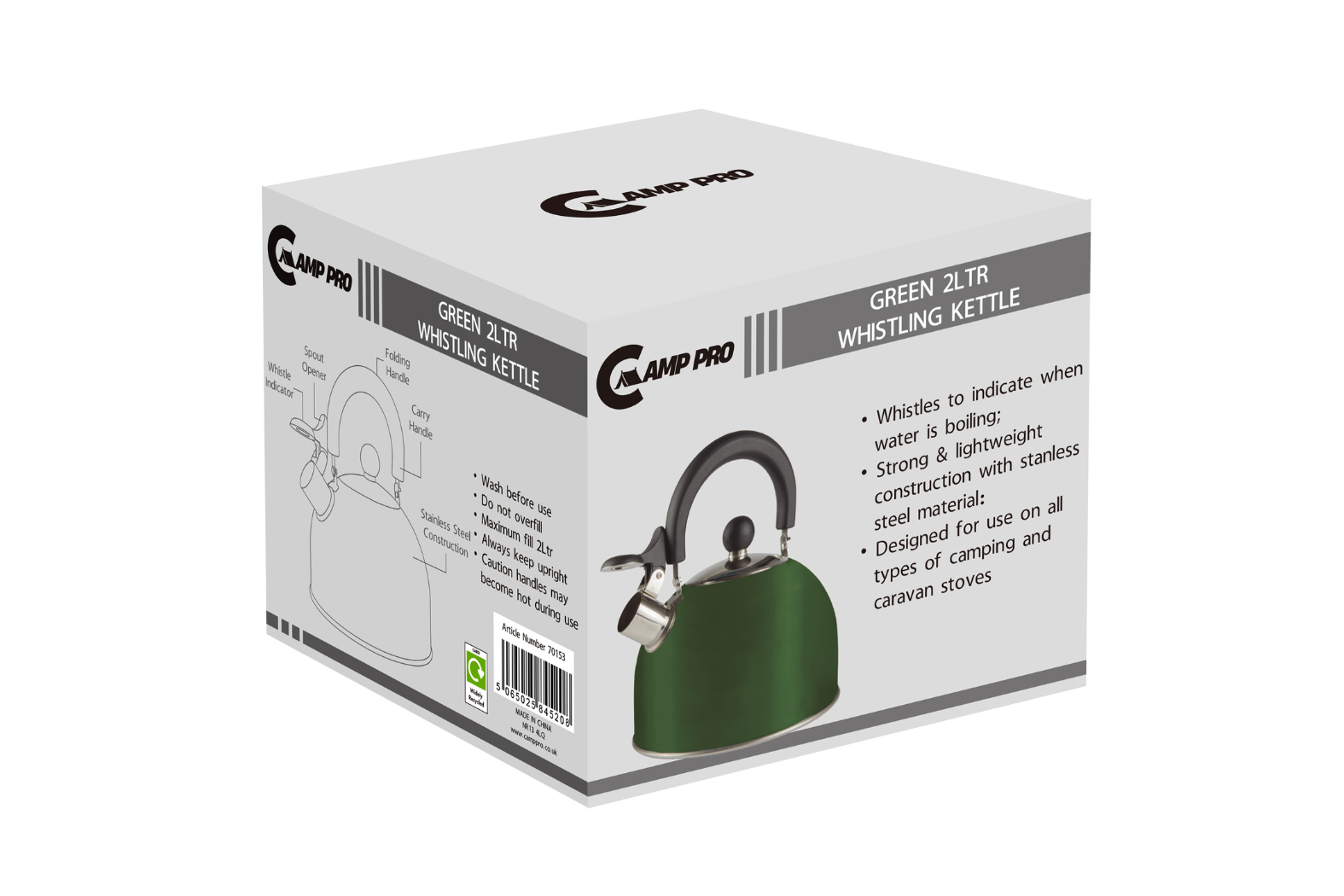 | Product Name | Camp Pro 2L Stainless Steel Whistling Kettle – Green |
