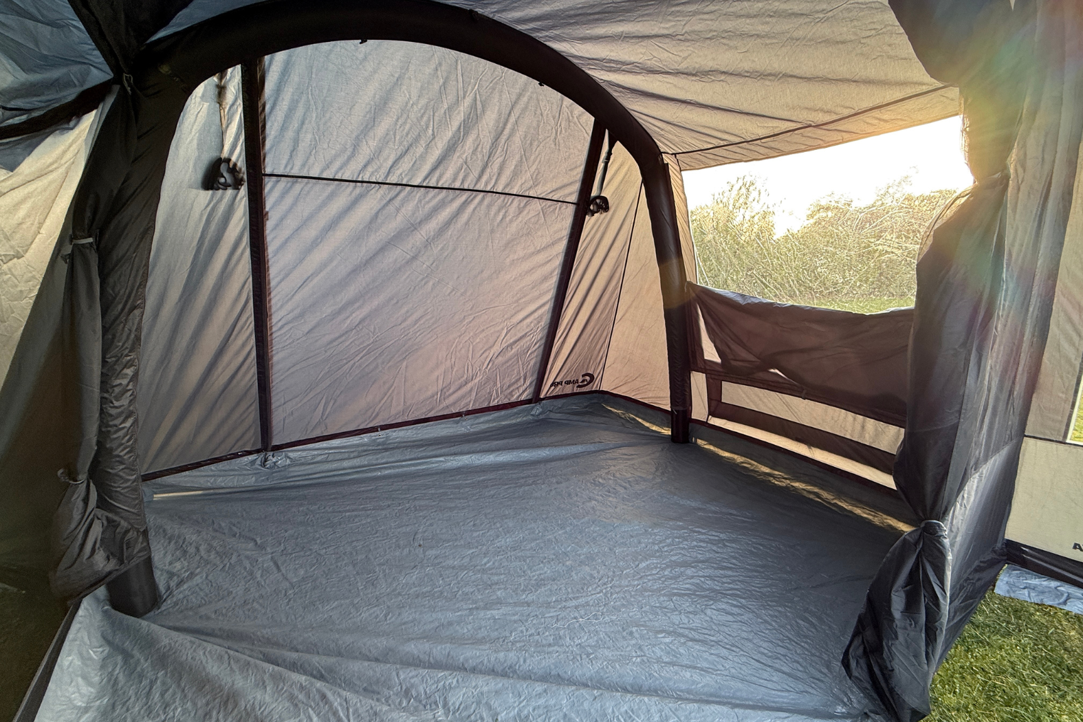 This air driveaway awning creates a bright and open living space, ideal for relaxing, dining, or storing your gear. The large front door opens wide, helping to bring in natural light and fresh air.