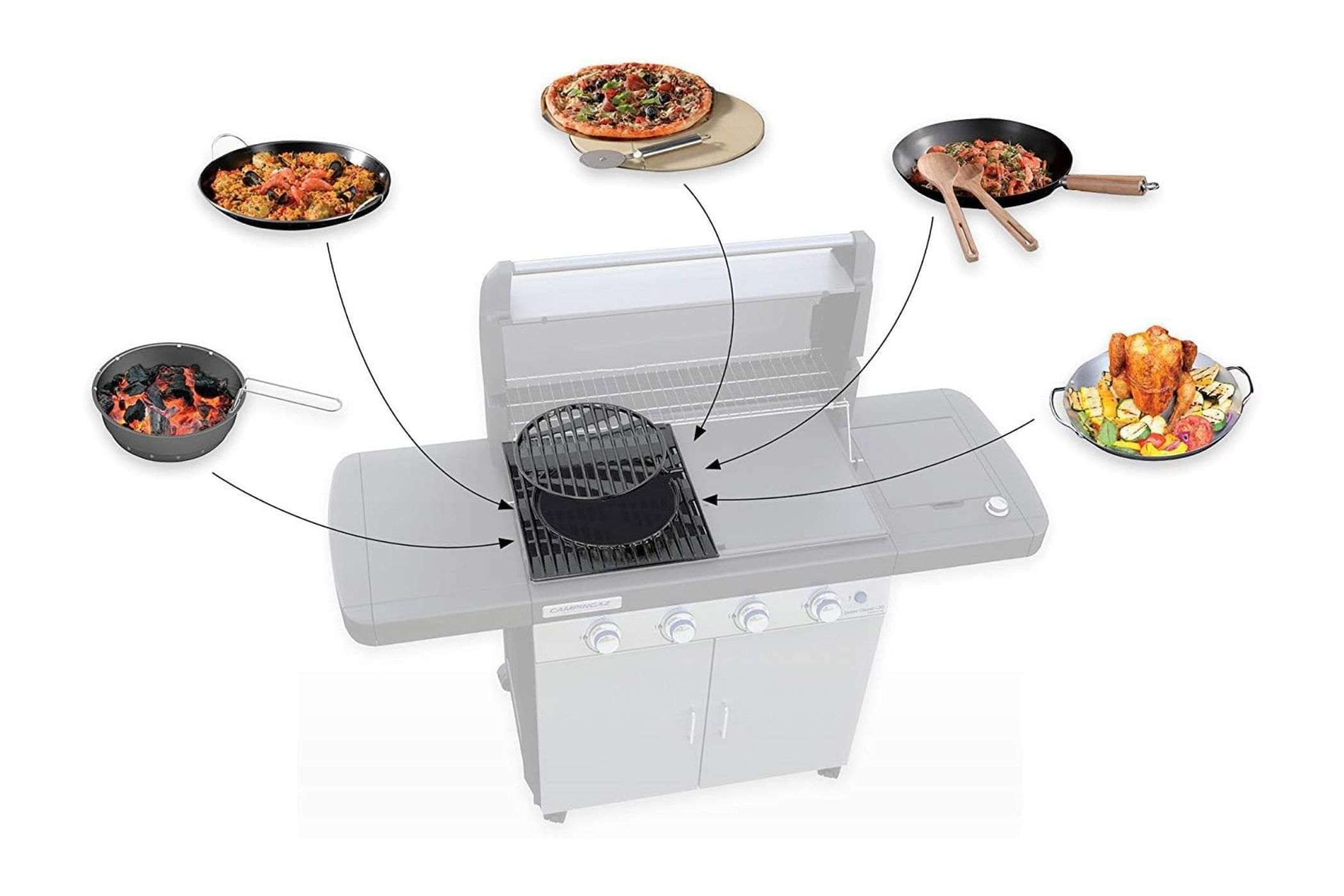 - Culinary Modular: Extend your kitchen with interchangeable cooking solutions. Exchanging the inner ring of the cast iron modular with the various Barbecue accessories