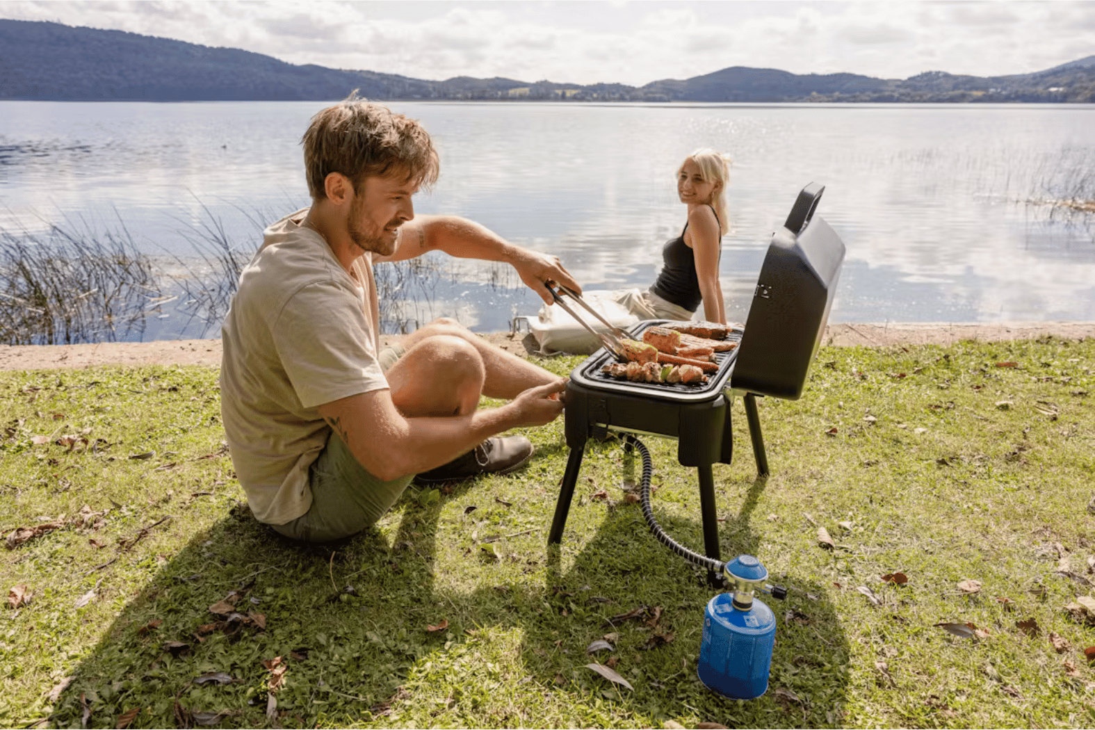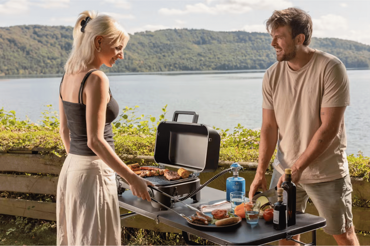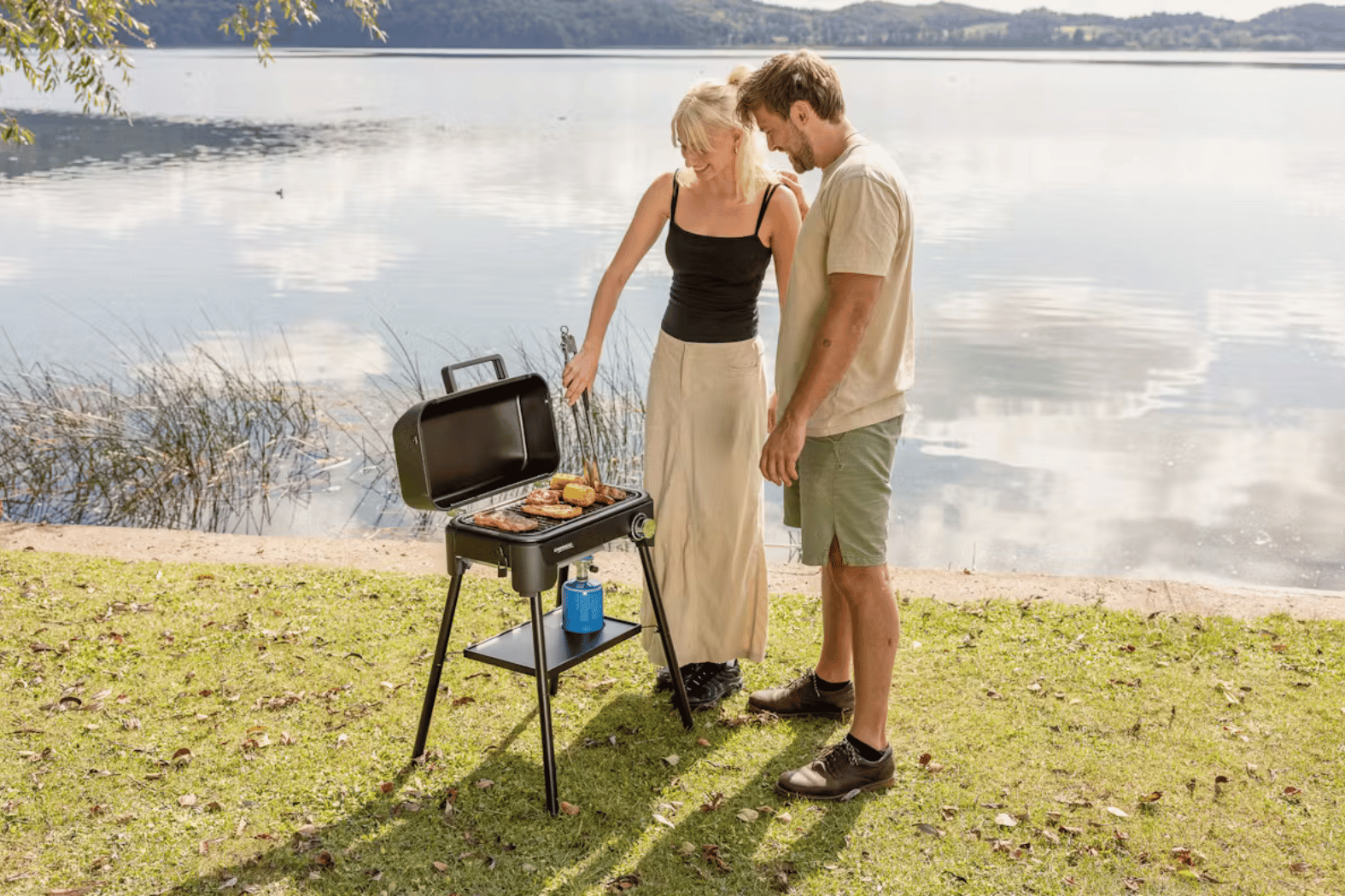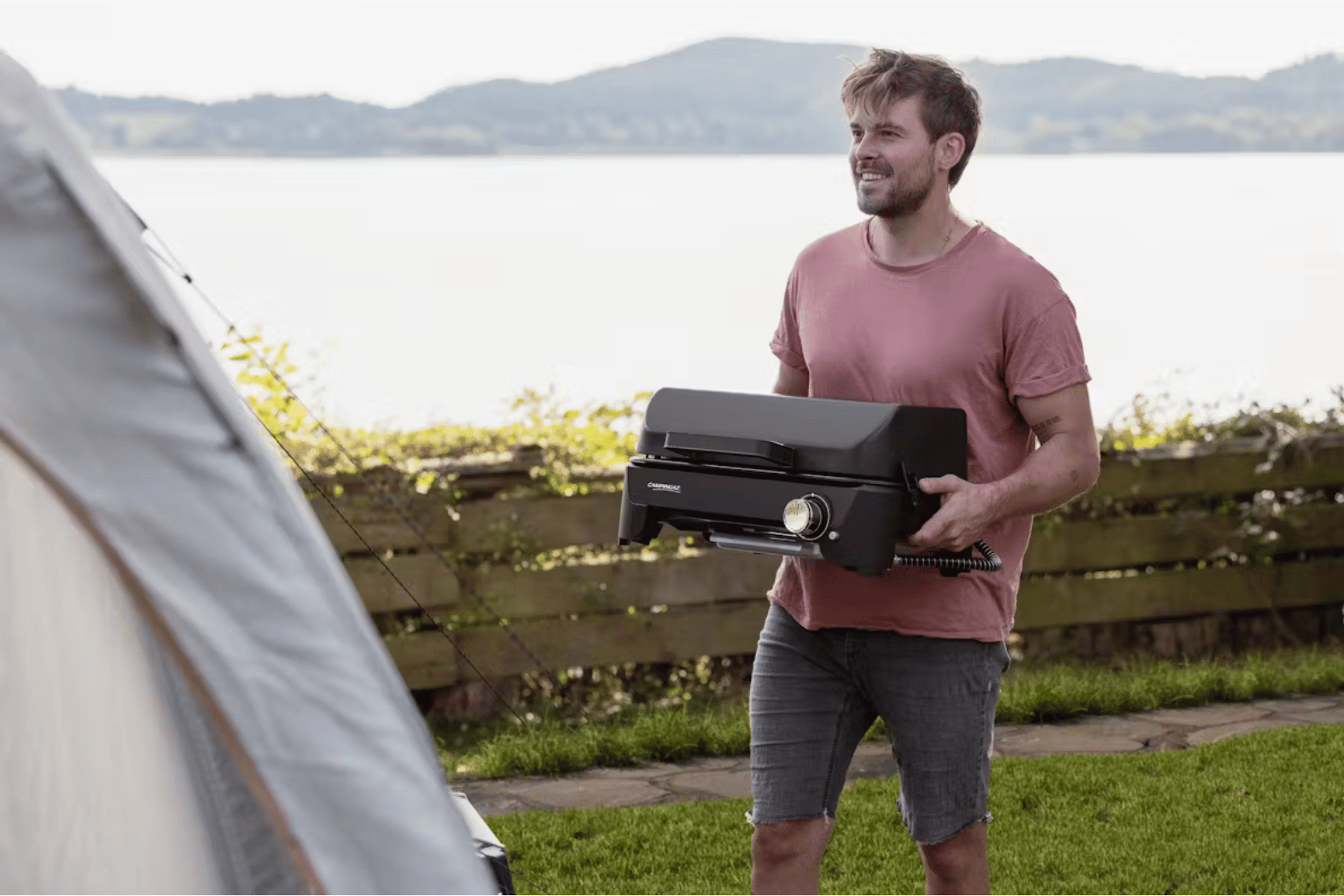 The Campingaz Tour & Grill CV Plus Gas BBQ – Black offers exceptional barbecue performance for those on the move – perfect for camping, your caravan, motorhome or campervan. With a cooking surface of 1200 cm² and stainless steel Blue Flame burners delivering 2.4kW of power, it ensures even heat distribution. This portable grill operates using a CV470 Cartridge, enhancing its versatility. Whether placed on a table-top or used with its steel legs and accessories for limited space, it’s ready for grilling. Featuring a dishwasher-safe, removable grease tray, integrated handles for easy transport, and a non-slip plastic base, it ensures convenience and safety. Additionally, a storage bag for the legs is included for added portability.
