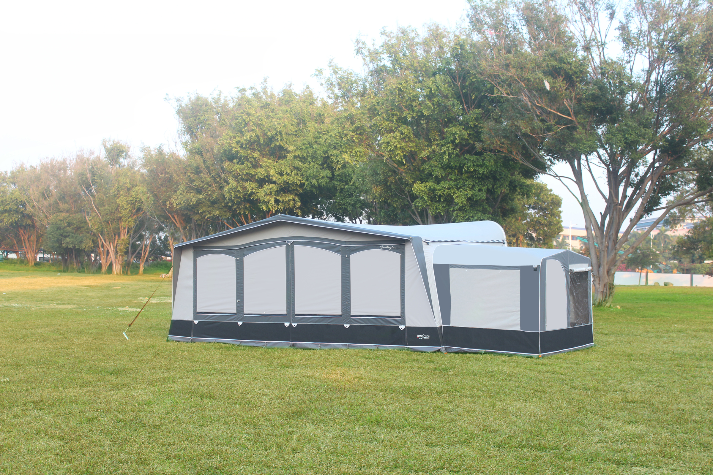 Fits the Camptech DL awning ranges. Top quality annex fitted with the luxury of a rear door which enables you to have easy access when using the annex for extra storage. The extra height makes the Deluxe Annex very comfortable for use as a family sleeping area.