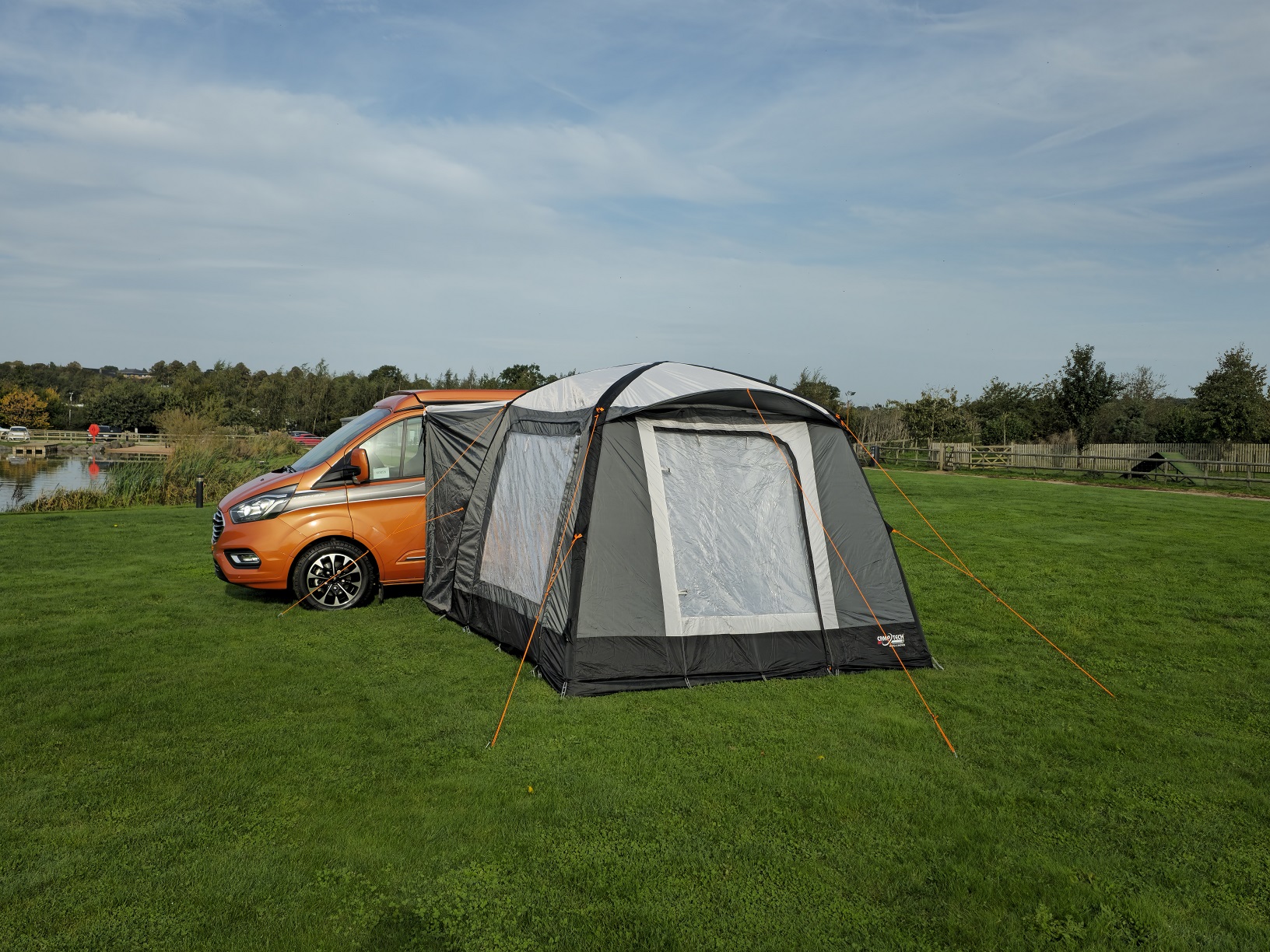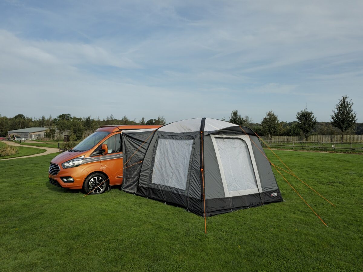 The Camptech Moto Crown Driveaway motorhome air awning measuring 3m wide and 3m deep. It has an exceptional internal living area. The back tunnel is available in three height options to accommodate most campervans and motorhomes and has a door for easy access into your vehicle. The canopy over the door protects you from the elements, the vent just below allows circulation of air and the internal blinds enables privacy when needed. Made from quality Climatech 210D material and features a single inflation point, the Moto Crown covers all your holiday needs.