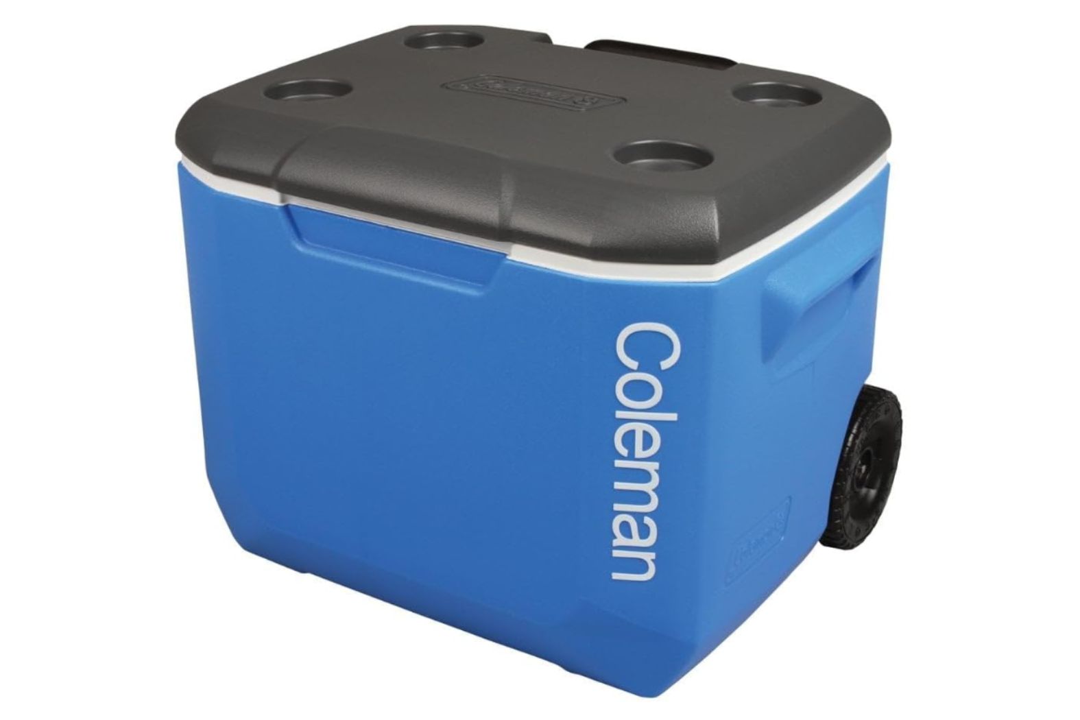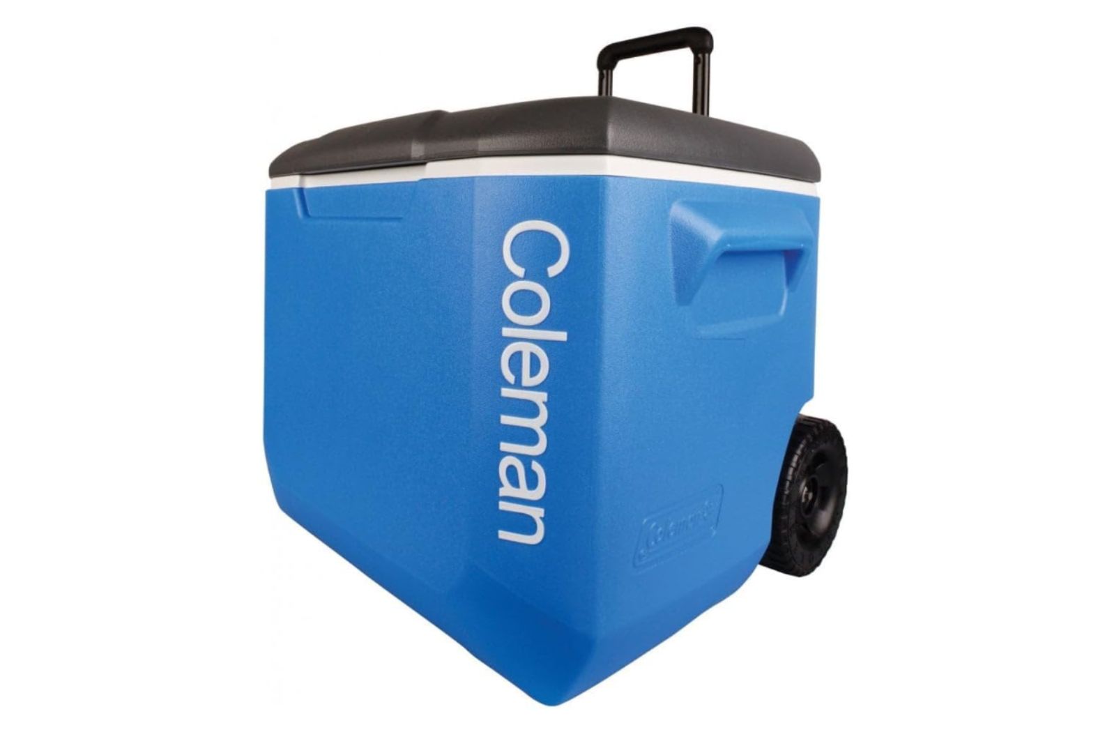 This stylish 56 litre cooler is filled with Polyurethane foam insulation which will keep the contents cold on ice for up to three days. Designed with two sturdy wheels and a telescopic steel handle this cooler is ideal for long road trips, days spent on the campsite and transporting food and drink around festival sites. Along with moulded carrying handles each side and a drain plug in the base to remove ice melt, this cooler features a robust hinged lid with four beverage holders built in.