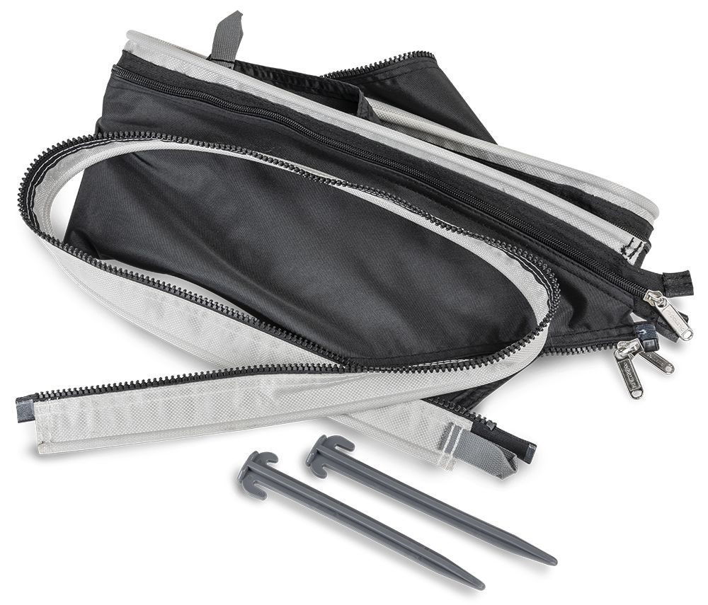 New for 2023 is the ability to attach the market leading inflatable AIR break to the awning channel on the side of the caravan. The keder simply slides into the unused channel on the side of the van and allows a secure enclosure to be created from one side of the awning to the side of the van.