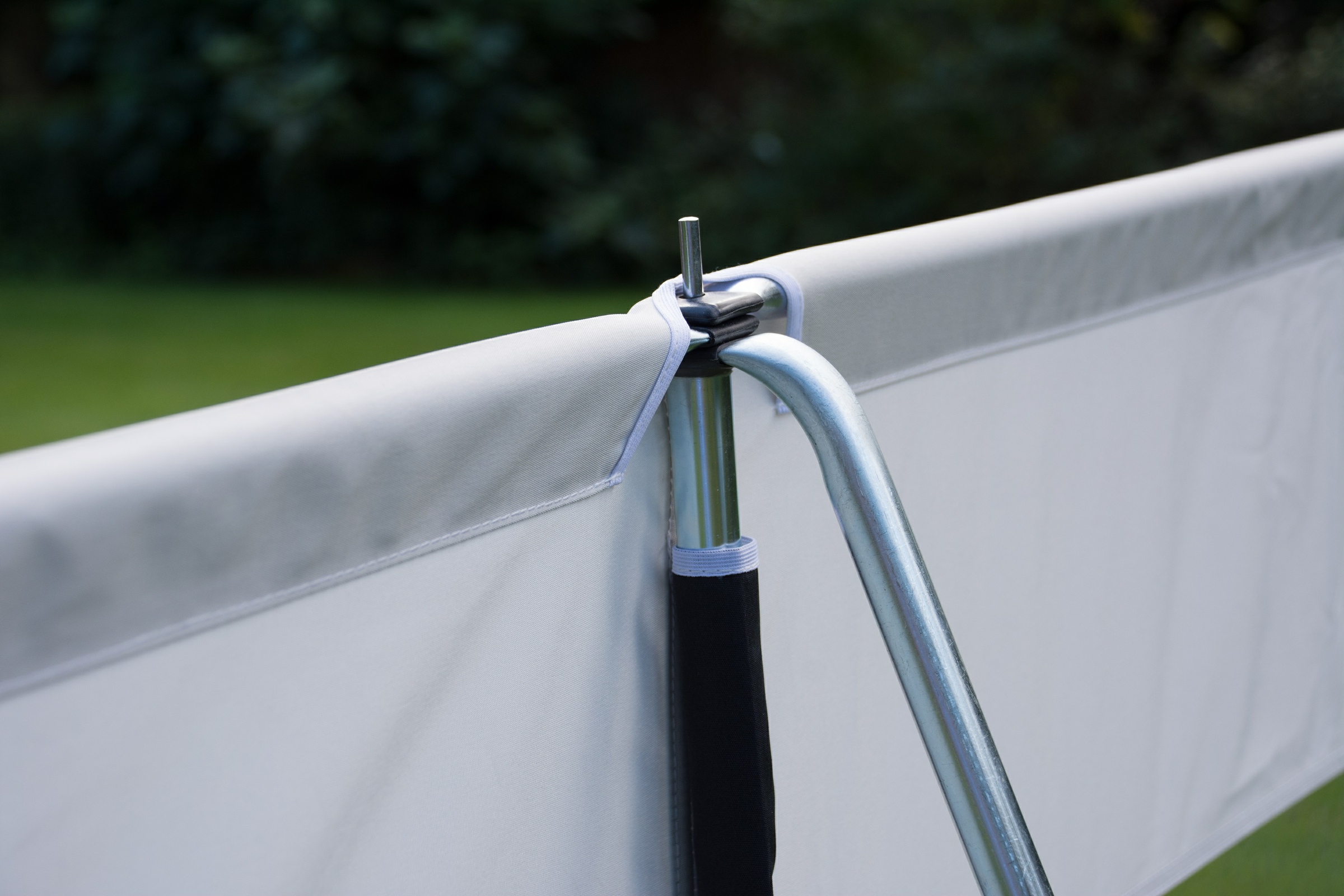 Quick and easy to set up, the Pro Windbreak gives you vital protection from the wind. Made in the same material as the Pro awnings, it’s supported with adjustable support bars.  The wind break provides a level of privacy but the Crystal Clear transparent panels mean that you’re not cut off completely.