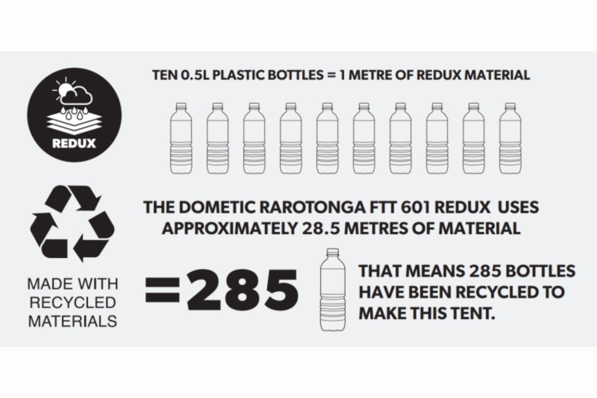 Experience unforgettable family camping holidays with the Dometic Rarotonga FTT 401 Redux. Made from innovative Weathershield™ Redux polyester, crafted from recycled plastic bottle yarn, this inflatable tent is both lightweight and exceptionally durable. Featuring mesh windows with zippered blinds and a groundsheet made of recycled oxford polyester, it promises comfort and dependable performance as you venture into nature.